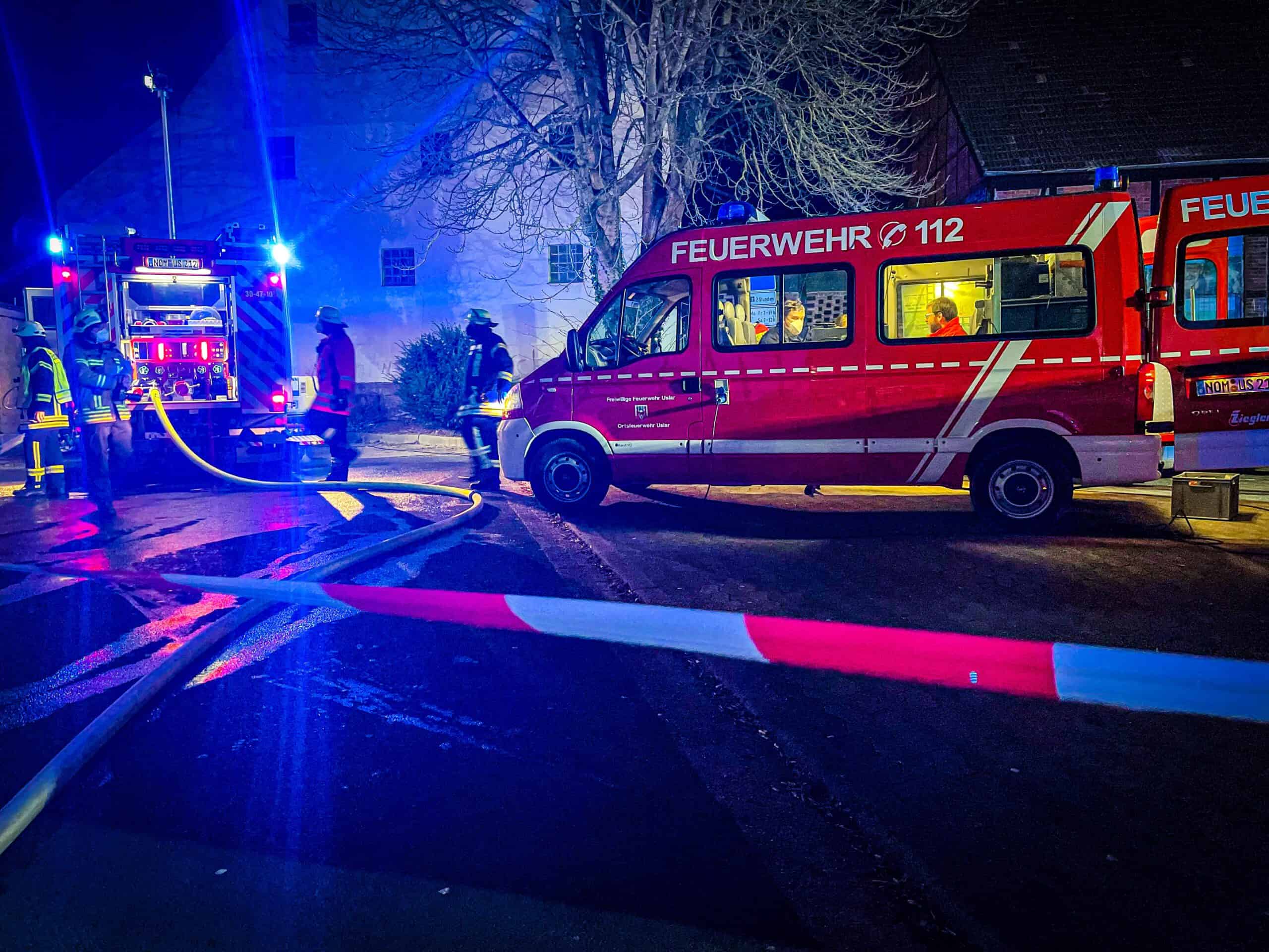 Gemeldet wurde ein Gebäudebrand im Hinterhaus eines Fachwerkgebäudes. Unter anderem durch den Einsatz mehrerer Trupps unter schwerem Atemschutz wurden die Flammen bekämpft.