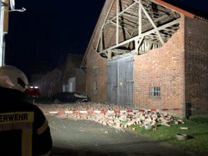 In Stöckheim ist außerdem eine Scheune teilweise eingestürzt. In Lindau und Bollensen haben sich Dächer von Gebäuden gelöst, in vielen Orten fallen Dachziegel von den Häusern.