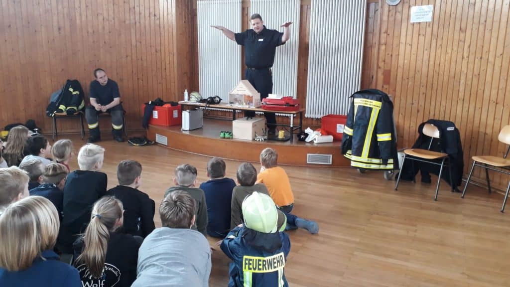 Für den Einstieg in das Thema „Feuer und Feuerwehr“ haben sich die drei dritten Klassen der Johann – Wolf – Schule in Nörten-Hardenberg Fachleute, sprich die Brandschutzerziehung des Landkreises Northeim eingeladen. Unter der Leitung des Brandschutzerziehers Uwe Döhne (Hillerse) sowie den Kameraden Maik Pfeiffer (Dassel) und Sven Friedrichs (Hillerse) hat das Brandschutzerziehungsteam genug Material mit in die Schule gebracht.