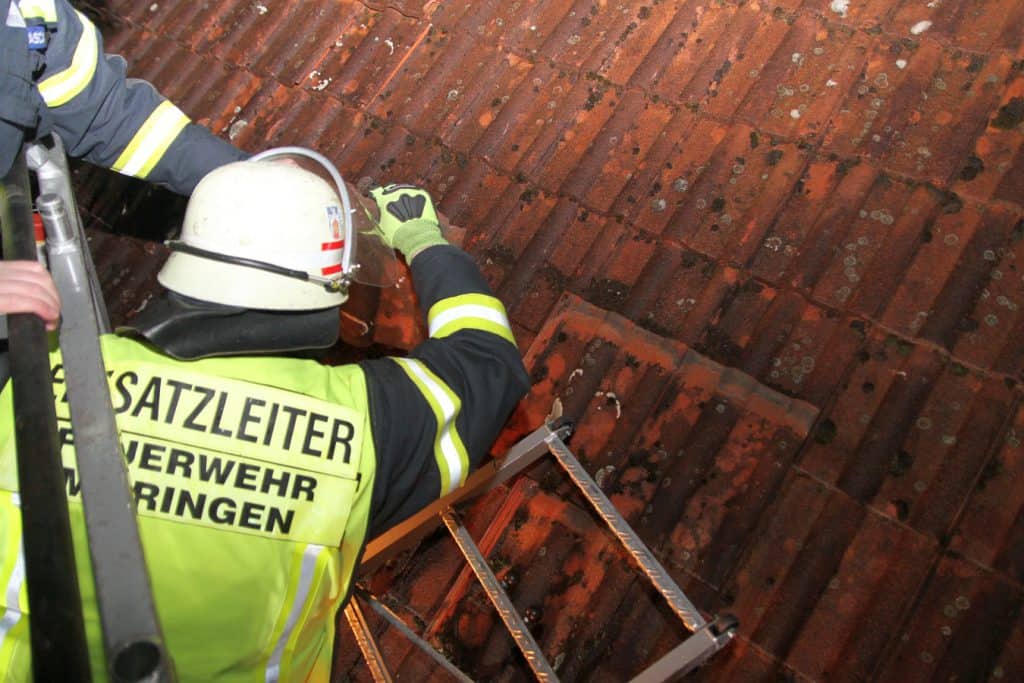 Die drei Feuerwehrleute aus Northeim die mit der Drehleiter vor Ort waren, beseitigten aus dem Korb der Drehleiter die losen Dachziegel vom Dach. Um weiteren Schaden zu verhindern, wurde die Stelle abermals mit Absperrband abgesperrt und die Straße für den Verkehr wieder freigegeben. Nach etwa einer Stunde war der Einsatz beendet.