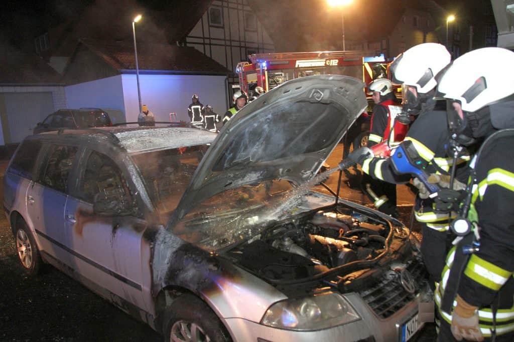 Northeim / Stadt Northeim (hl) Ein 23-jähriger Fahrzeugführer stellte am 31.03.2019 gegen 20:32 Uhr laut Polizei ein Fahrzeug VW Passat in Northeim, Am Klostergarten in der Nähe des City-Centers ab. Nachdem er aus dem Fahrzeug stieg, bemerkte er, laut Polizei, dass aus dem Motorraum Qualm kam. Über den Notruf wurden die Leitstelle und die Polizei in Northeim verständigt. Nachdem die Polizei und der Brandmeister vom Dienst (Einsatzleiter) an der Einsatzstelle eingetroffen waren, brannte das Fahrzeug in voller Ausdehnung. Die Polizei sperrte die Einsatzstelle ab.
