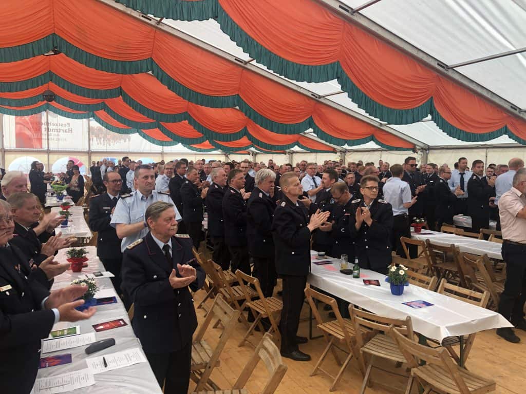 9.44 Uhr: Standing Ovation für Kreisbrandmeister Bernd Kühle nach seinem letzten Jahresbericht im Amt als Kreisbrandmeister und damit auch Vorsitzendem des Kreisfeuerwehrverbands Northeim e.V.