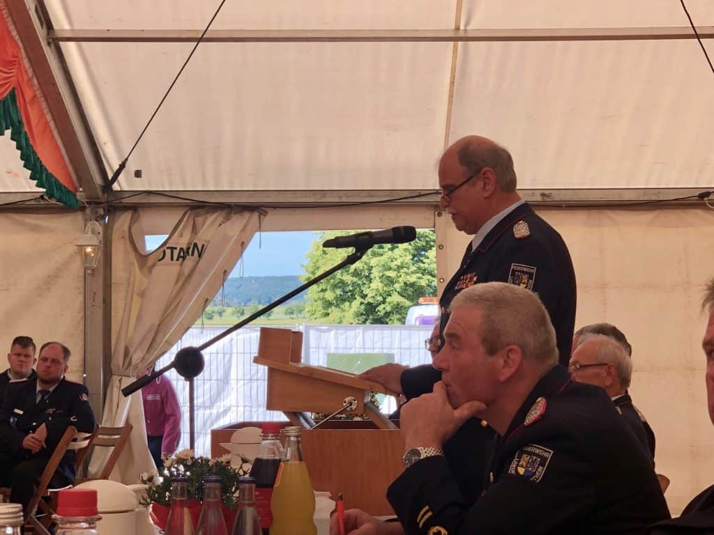9.13 Uhr: “Die Feuerwehren sind vielfach das Rückgrat der Dorfgemeinschaften”, sagt Markus Seidel, stv. Bürgermeister der Stadt Einbeck, in seinem Grußwort. Das werde exemplarisch beim Zeltfest in Drüber deutlich.