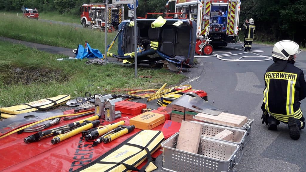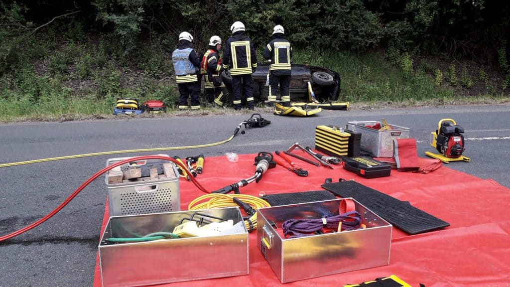 Nach dem die „inneren Retter“ in den verunfallten PKWs die Stabilisierung der Patienten durchgeführt hatten, konnte mit schwerem hydraulischem Rettungsgerät die Rettung begonnen werden.