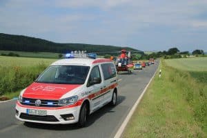 Die erste Meldung nach einer eingeklemmten Person bestätigte sich zwar nicht, allerdings hat man sich aufgrund der schweren Verletzungen dazu entschieden, zusammen der Feuerwehr Bad Gandersheim die Patienten schonend aus dem Wagen zu befreien.
