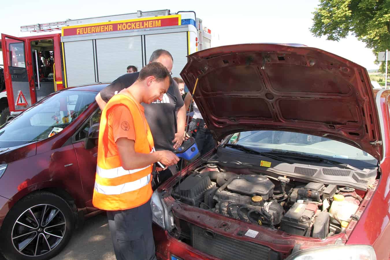 Die Stützpunktfeuerwehr Höckelheim wurde über Digitale Funkmeldeempfänger alarmiert. Die 12 Einsatzkräfte der Feuerwehr Höckelheim, die mit einem Tanklöschfahrzeug und einem Hilfeleistungslöschgruppenfahrzeug zur Einsatzstelle fuhren und an die Einsatzstelleangekommen waren, fest, dass kein Qualm mehr aus dem Motorraum kam. Aber es sehr stark nach verbrannten Materialien roch. Die Einsatzkräfte kontrollierten den Motorraum mit einer Wärmebildkamera, konnten aber nichts feststellen. Nach etwa 30 Minuten war der Einsatz beendet. Personen wurden nicht verletzt.