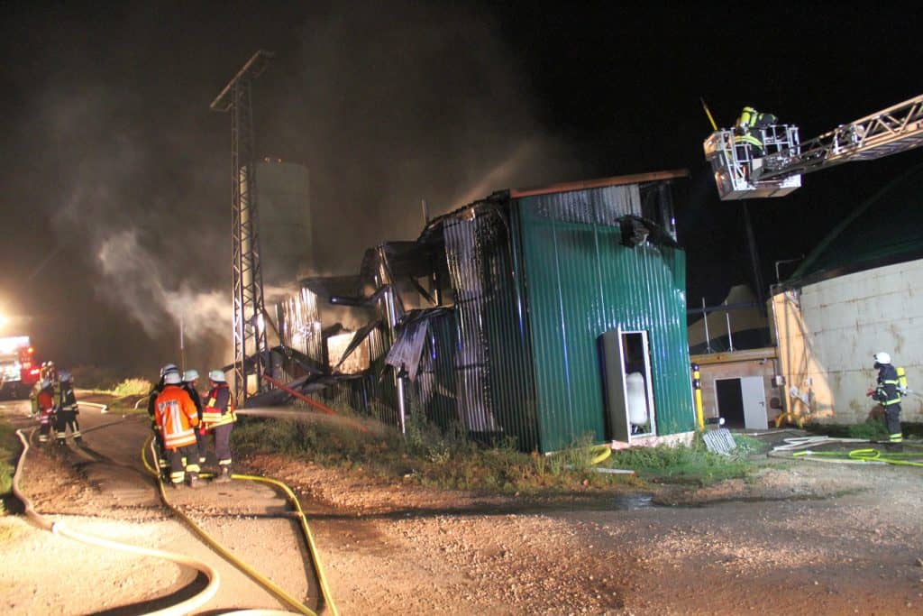 Nachdem die ersten Einsatzkräfte vor Ort waren, stand das Blockheizkraftwerk der Biogasanlage in dem Schönenbergweg in Vollbrand. Der erste Löschangriff wurde von Feuerwehrleuten unter Atemschutz von den Tanklöschfahrzeugen aus vorgenommen. In der Zwischenzeit wurde eine B-Schlauchleitung von etwa 2.000 Meter von Lichtenborn verlegt. Weitere wurden von der Zisterne und aus Unterflurhydranten von Lichtenborn verlegt. Die eingesetzten Feuerwehrleute hatten nach etwa einer Stunde das Feuer unter Kontrolle und somit ein Übergreifen der Flammen auf benachbarte Gebäuden verhindert. Die Nachlöscharbeiten zogen sich bis in die Morgenstunden hin. Die Feuerwehr Lichtenborn hat am Morgen noch eine Brandwache gestellt.