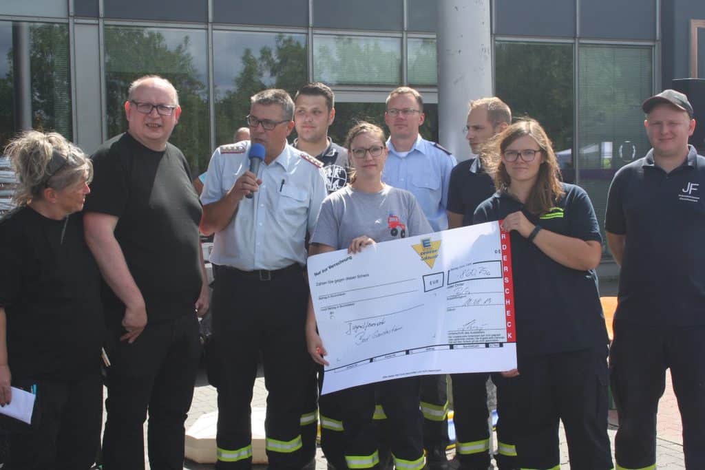Einen schönen und würdigen Rahmen bildeten die Grillmeisterschaften, denn die Kinder- und Jugendfeuerwehren konnten aus den Händen von Familie Scheuner E-Center Bad Gandersheim 860,75 € aus der Pfandbonbox entgegen nehmen. Die Kinder- und Jugendfeuerwehren bedanken sich bei allen Personen, die ihren Pfand Bon für die Nachwuchsarbeit in den Freiwilligen Feuerwehren zur Verfügung gestellt haben.