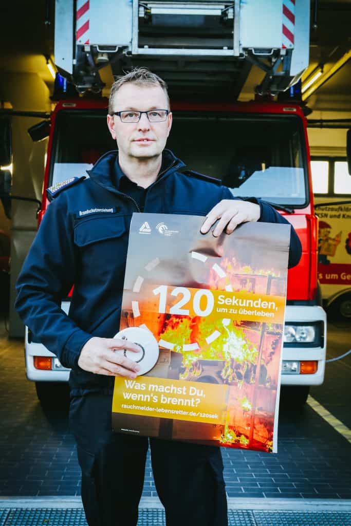 Appelliert an alle, die noch keine Rauchmelder installiert haben, dies dringend zu tun: Kreisbrandschutzerzieher Sven Helmold. Foto: Konstantin Mennecke/Kreisfeuerwehr