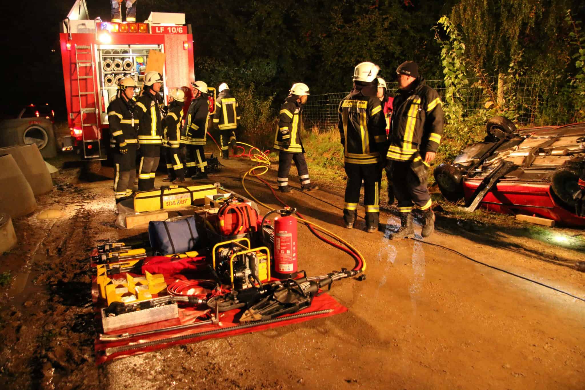 Da beide Feuerwehren einen Rettungssatz, bestehend aus Rettungsschere und -Spreizer sowie weiterem Material für die Technische Hilfeleistung haben, konnte an beiden Unfallautos parallel gearbeitet werden.