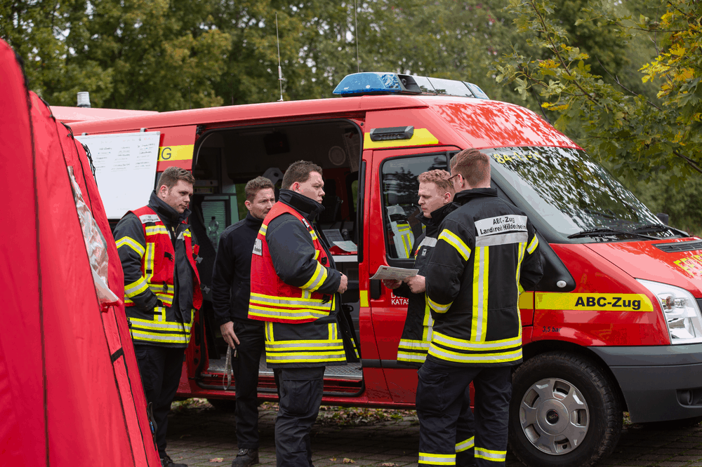 Am Sonntag wurde an die Lage des Vortages angeknüpft. Hier galt es durch die Einheiten eine großflächige Überprüfung der Ausbreitung des radioaktiven Materials im Landkreis Northeim vorzunehmen. Hierzu wurde eine Messleitkomponente errichtet und mehrere Fahrzeuge an mehr als 20 Orte koordiniert, um entsprechende Messungen vorzunehmen. Als Übungsbeobachter waren auch Kreisbrandmeister Marko de Klein und Bad Gandersheims Stadtbrandmeister, Kai-Uwe Roßtock, zugegen.