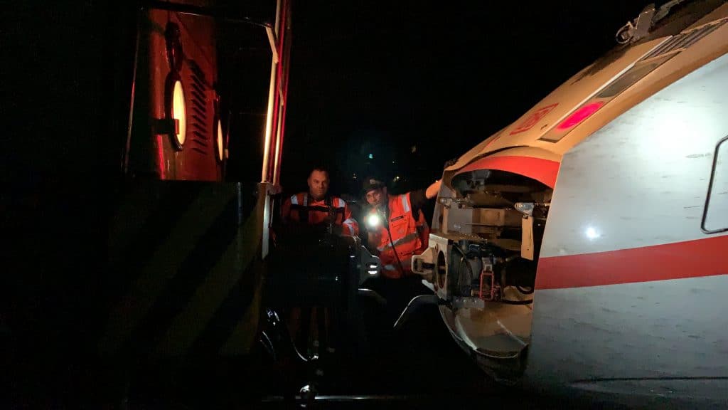 Die ersten Pläne der Bahn sahen vor, einen Ersatzzug auf das Nachbargleis zu fahren und die etwa 650 Fahrgäste in diesen umsteigen zu lassen. Daher wurde die Feuerwehr zum Ausleuchten der Einsatzstelle, durch den DB Notfallmanager angefordert.