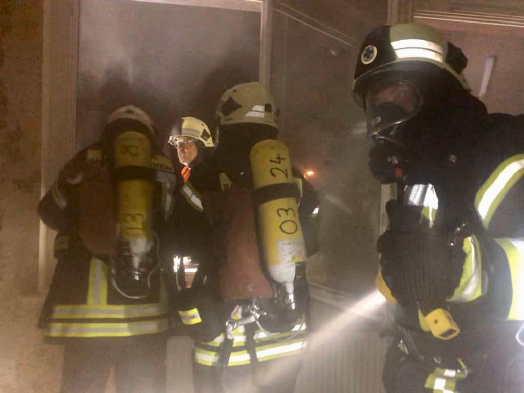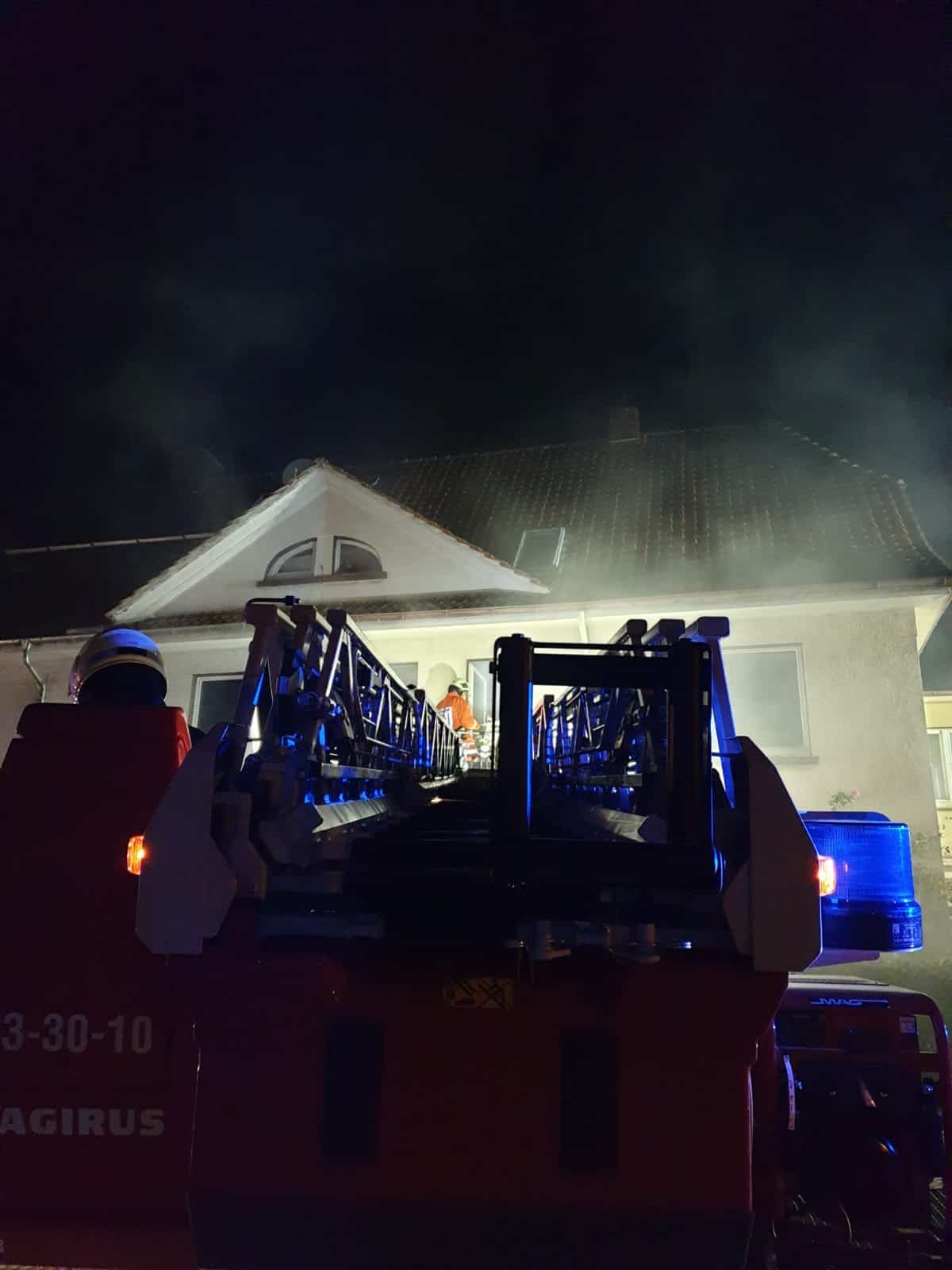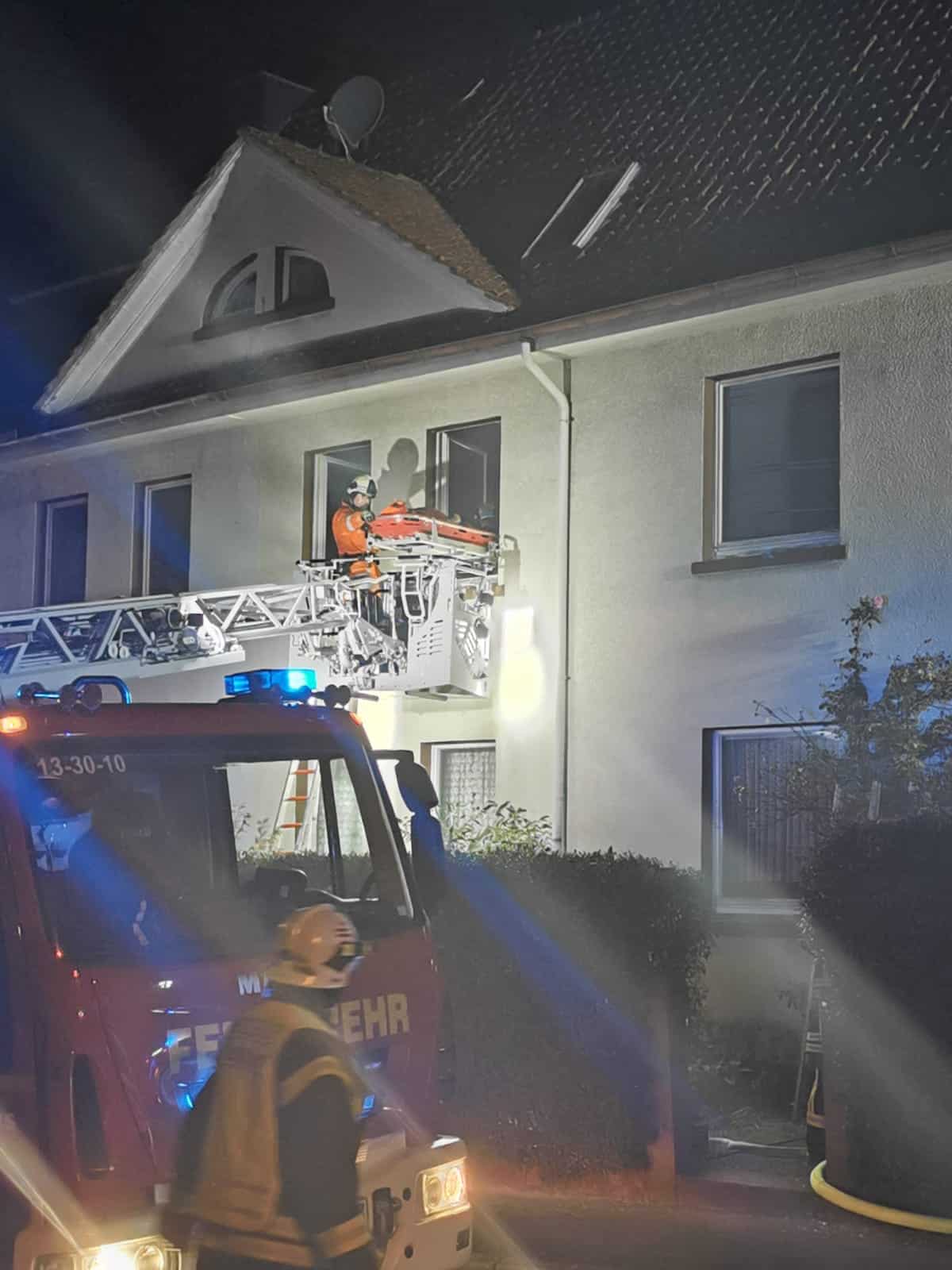 Nach der Menschrettung wurde die Brandbekämpfung durch zwei weitere Atemschutztrupps unterstützt, sodass die Brandbekämpfung im ersten und zweiten Obergeschoss des Hauses zeitnah beendet werden konnte. Durch zwei Hochleistungslüfter wurde im Anschluss die gesamte Haushälfte belüftet.