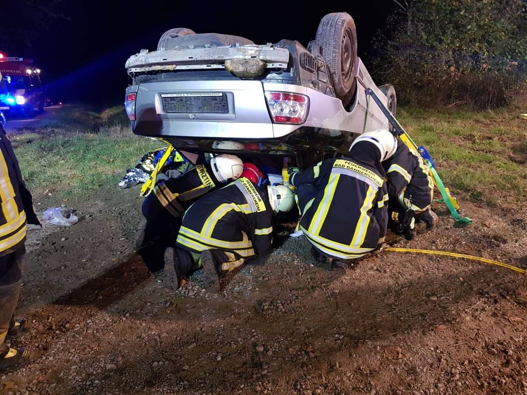 Auf dem Wadenberg in Bad Gandersheim ist es aus noch nicht geklärter Ursache zu einem Zusammenstoß zweier Personenkraftwagen gekommen. Als Folge des Zusammenstoßes stürzte ein PKW auf das Dach. In den Fahrzeugen, einem Skoda Octavia und einem Audi A4 wurden je eine Person mit dem Verletzungsmuster Polytrauma eingeklemmt.