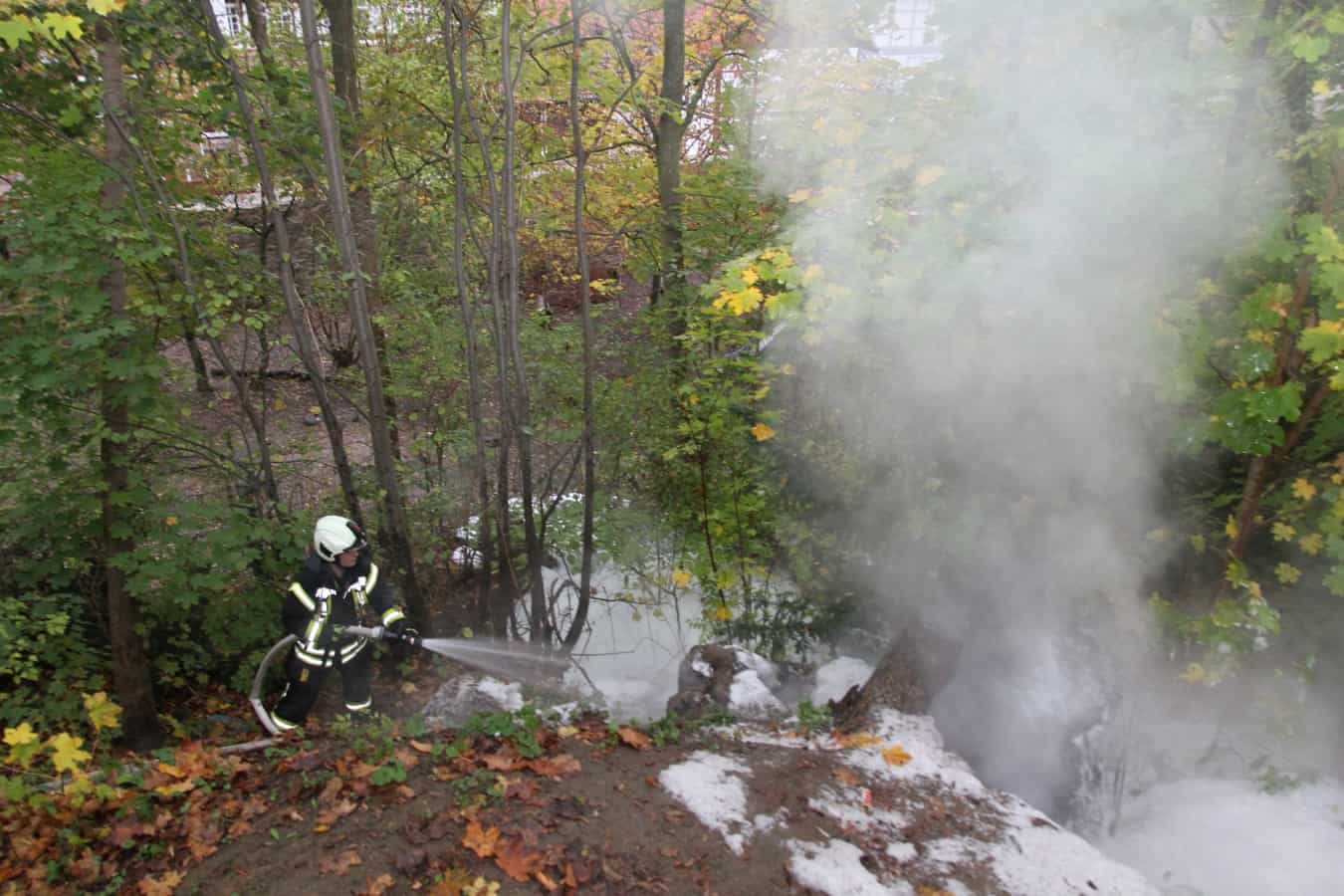Die Schwerpunktfeuerwehr Northeim wurde am 06.11.2019 gegen 07:53 Uhr über Digitale Funkmeldeempfänger zu einem Baumbrand alarmiert.In Northeim auf dem Tourlaviller Wall brannte an einer Böschung ein Baumstamm. Die alarmierten Feuerwehrleute verlegten eine etwa 50 Meter lange Schlauchleitung vom Tanklöschfahrzeug 16/25 zur Einsatzstelle. Nachdem die Schlauchleitung verlegt war, wurde der Baumstamm erst mit Wasser abgelöscht. Da das Feuer schon in das Erdreich und an die Wurzel gelangt war, wurde anschließend mit einer Leichtschaumpistole Löschschaum auf den Baumstamm gegeben. Der Einsatzleiter nahm Kontakt mit dem Bauhof der Stadt Northeim auf, die anschließend eine Erdschicht über den ausgebrannten Baumstall legten. Nach etwa einer Stunde war der Einsatz beendet. Personen kamen nicht zu Schaden. Bei dem Einsatz waren sieben Feuerwehrleute der Ortsfeuerwehr Northeim, zwei Polizeibeamte und Mitarbeiter vom Bauhof Northeim im Einsatz. Die Polizei nahm die Ermittlungen nach der Ursache des Feuers auf. Ein Sachschaden konnte noch nicht ermittelt werden.