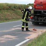 Der Sachschaden wird auf etwa 8.000 € geschätzt.Die Reinigung der Straße übernahm eine Ölspurbeseitigungsfirma. Die Unfallstelle wurde halbseitig von der Polizei für den Verkehr freigegeben. Im Einsatz waren 15 Feuerwehrleute, ein Rettungswagen vom Arbeiter-Samariter-Bund und ein Rettungswagen vom Deutschen-Roten-Kreuz mit je zwei Notfallsanitätern, zwei Streifenwagen mit je zwei Polizeibeamtinnen und Polizeibeamten vom PI Northeim, zwei Abschleppfirmen und eine Ölspurbeseitigungsfirma.