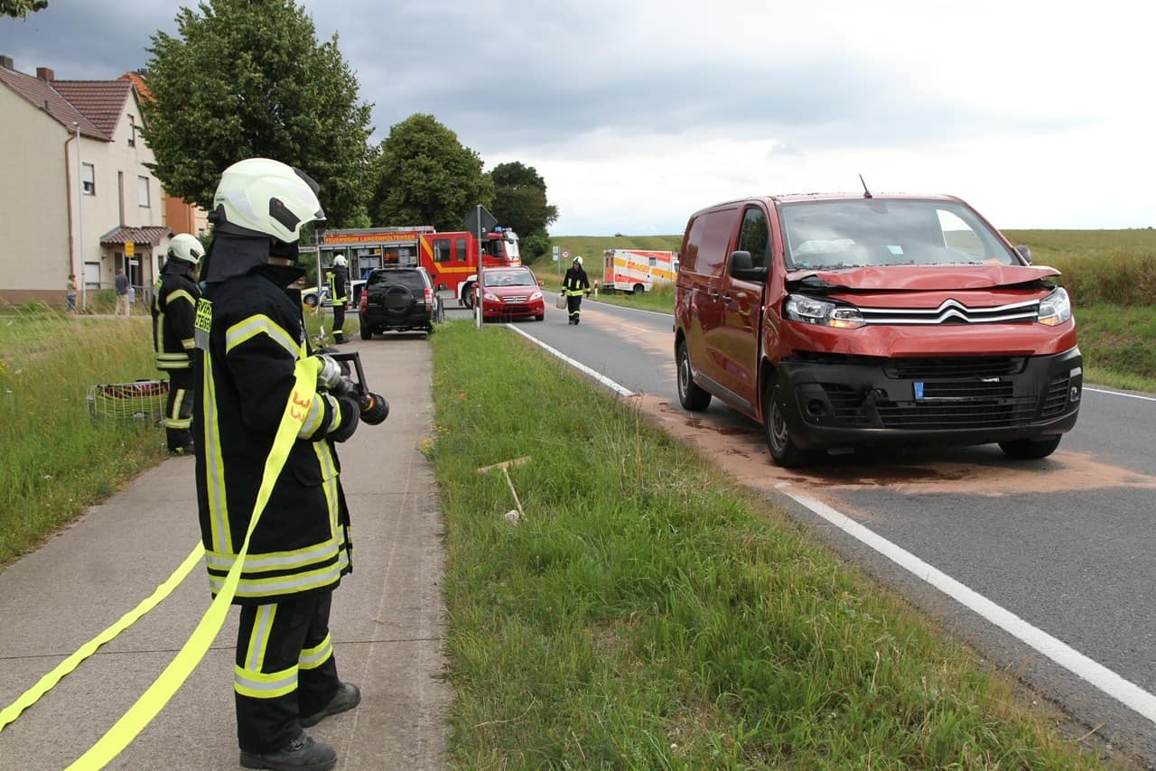 Die Feuerwehr sicherte sofort die Unfallstelle ab. Die Fahrzeuginsassen wurden von Feuerwehrmitgliedern und den Ersthelfern bis zum Eintreffen des Rettungsdienstes und der Polizei versorgt und betreut. Anschließend wurden sie mit Rettungswagen in die Helios Albert-Schweitzer-Klinik nach Northeim gebracht. Da bei dem Zusammenprall Betriebsstoffe aus dem Lieferwagen ausgeflossen waren, wurden diese von der Feuerwehr mit Bindemittel abgestreut. Ein Feuerwehrmann stellte mit einem C- Rohr vom Tanklöschfahrzeug den Brandschutz sicher. Danach wurden die Fahrzeugbatterien abgeklemmt.