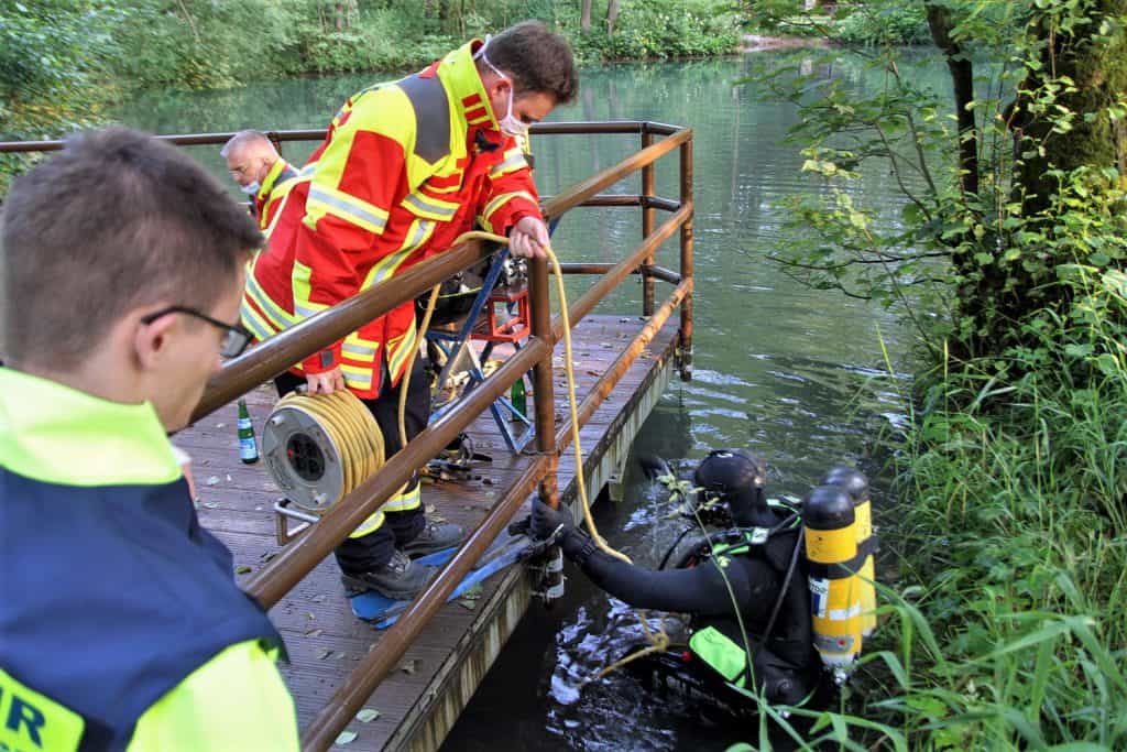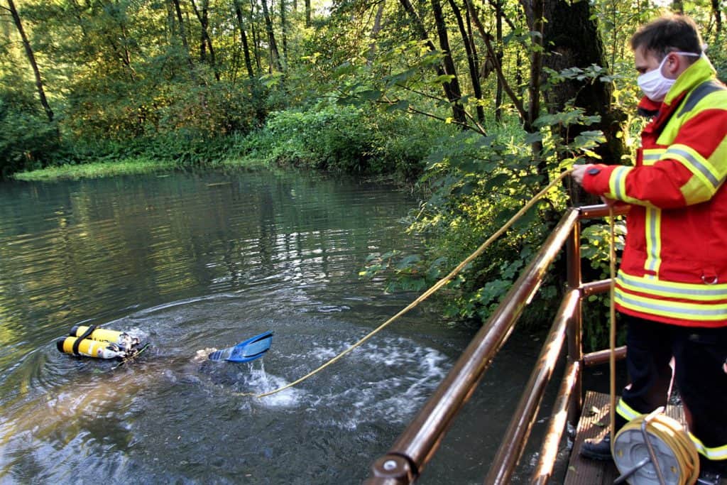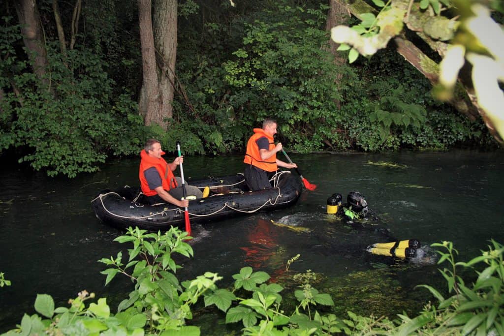 Rhumspringe (hl) Der 1. Zug Wasserrettung und die Arztgruppe der Umweltfeuerwehr, sowie eine Dekon-Gruppe des 3. Zuges der Feuerwehrbereitschaft 4 des Landkreises Northeim, wurden zur Unterstützung bei der Suche nach einer Person in der Rhumequelle nach Rhumspringe angefordert.