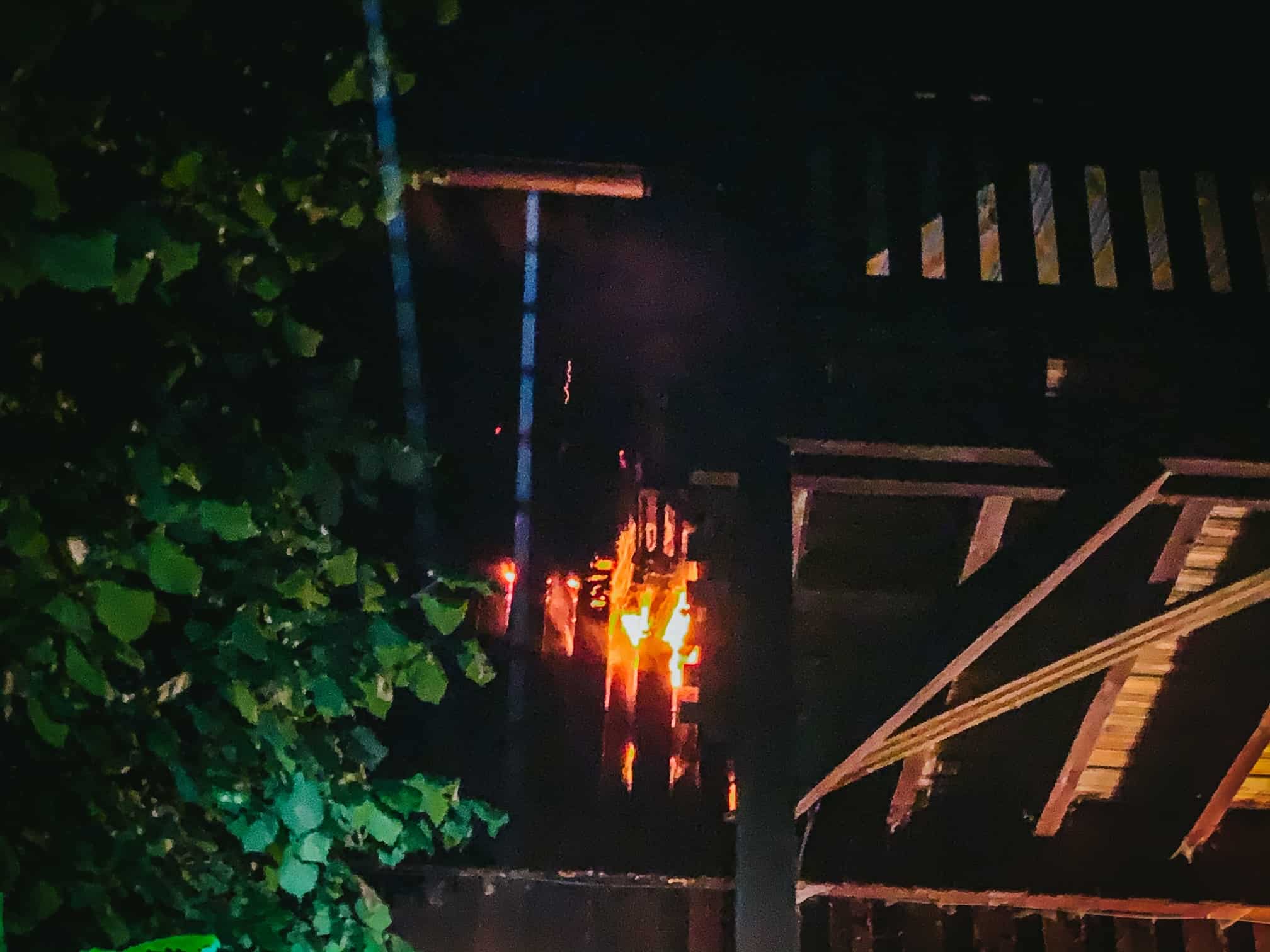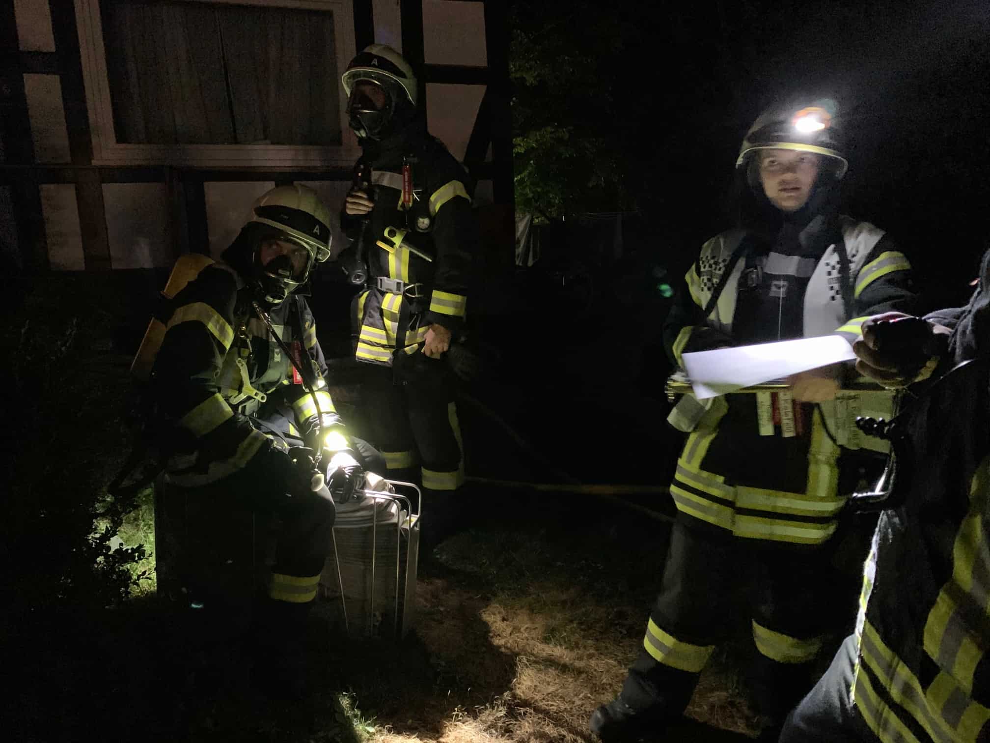 Beim Eintreffen der ersten Kräfte nur wenige Minuten später bestätigte sich diese Meldung: an der Holzfassade eines Wohnhauses schlugen Flammen hoch. Das Feuer war dabei, auf den Dachstuhl überzugreifen. Die Hausbewohner, die das Feuer durch eigene Mittel versuchten zu löschen, wurden durch die Einsatzkräfte evakuiert und letztlich mit dem Verdacht auf Rauchvergiftung ins Krankenhaus nach Northeim gebracht. Die Hunde der Hausbewohner wurden parallel dazu bei einem Züchter untergebracht.