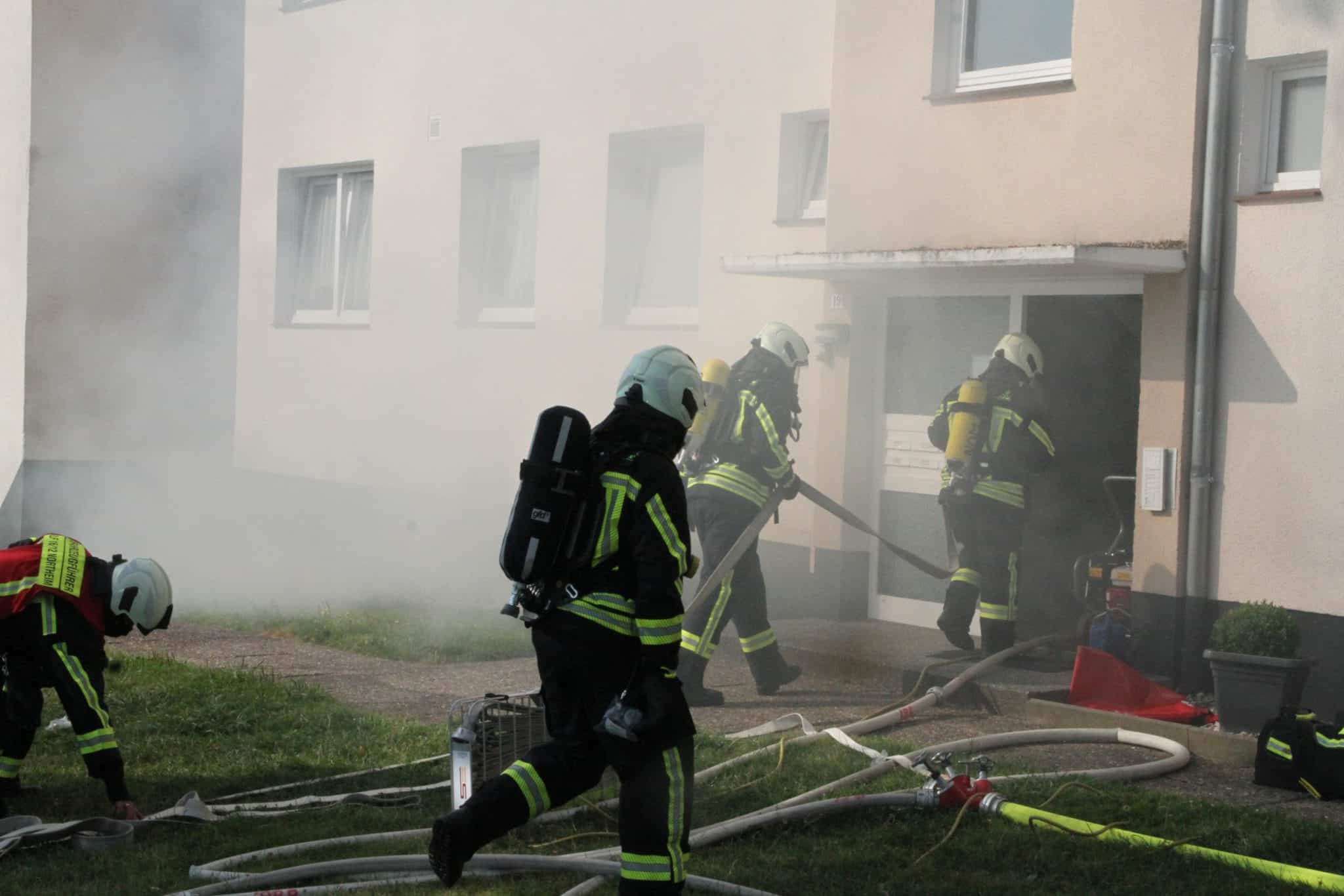 Northeim: (hl) Anwohner des „Neustädter Rings“ in Northeim meldeten eine Rauchentwicklung aus einem Kellerfenster eines Mehrfamilienhauses. Die Schwerpunktfeuerwehr Northeim, der Rettungsdienst, die Polizei und der Organisatorische Leiter Rettungsdienst des Landkreises Northeim wurden über Digitale Funkmeldeempfänger alarmiert. Laut derzeitigen Ermittlungsstand kam es durch Schweißarbeiten im Keller zu einem Funkenflug. Da das Feuer nicht mehr eigenständig durch den Verursacher gelöscht werden konnte, wurden die Bewohner evakuiert und die Feuerwehr verständigt. Nachdem der Brandmeister vom Dienst sich ein Bild von der Einsatzstelle gemacht hatte, ließ er den Alarm auf „Einsatz groß“ erhöhen und die Stützpunktfeuerwehr Langenholtensen wegen der Atemschutzgeräteträger mit alarmieren. Zu diesem Zeitpunkt war die eine Hälfte des Hauses in dem der Brand ausgebrochen war schon von der Polizei und dem Hausmeister evakuiert worden.