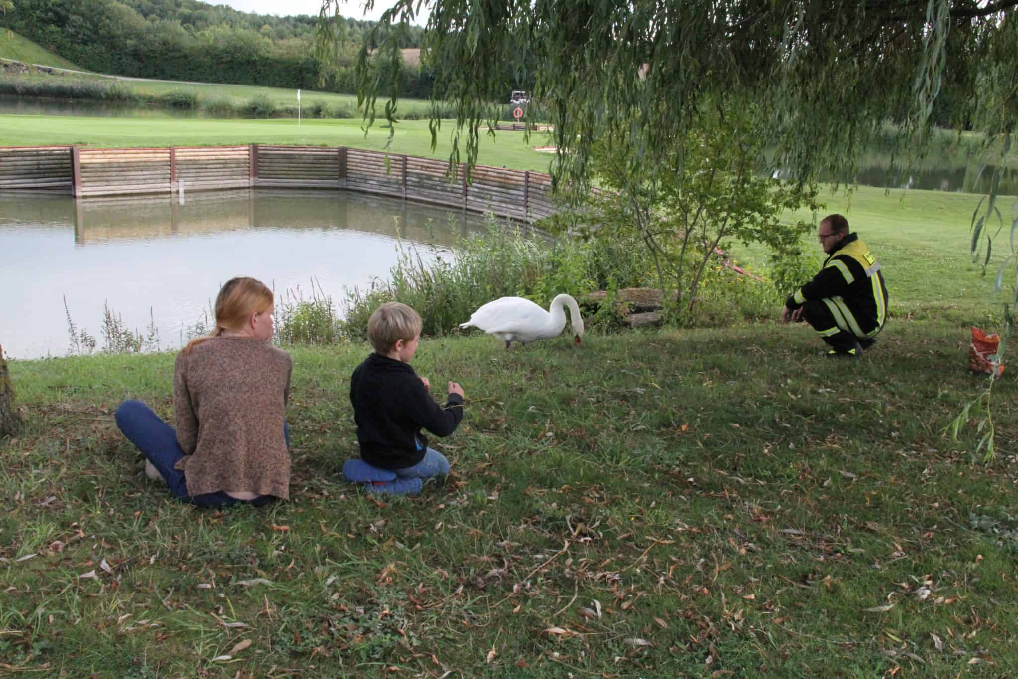 Levershausen (hl) Am 01.09.2020 gegen 17:36 Uhr wurde die Ortsfeuerwehr Sudheim über Digitale Funkmeldeempfänger zu einer Tierrettung alarmiert. Auf dem Gelände der Golfanlage in Levershausen befand sich ein verletzter Schwan, der eingefangen werden musste. Wegen einer großen Tier-Gitterbox wurde die Ortsfeuerwehr Northeim mit ihrem Gerätewagen-Logistik mit alarmiert.