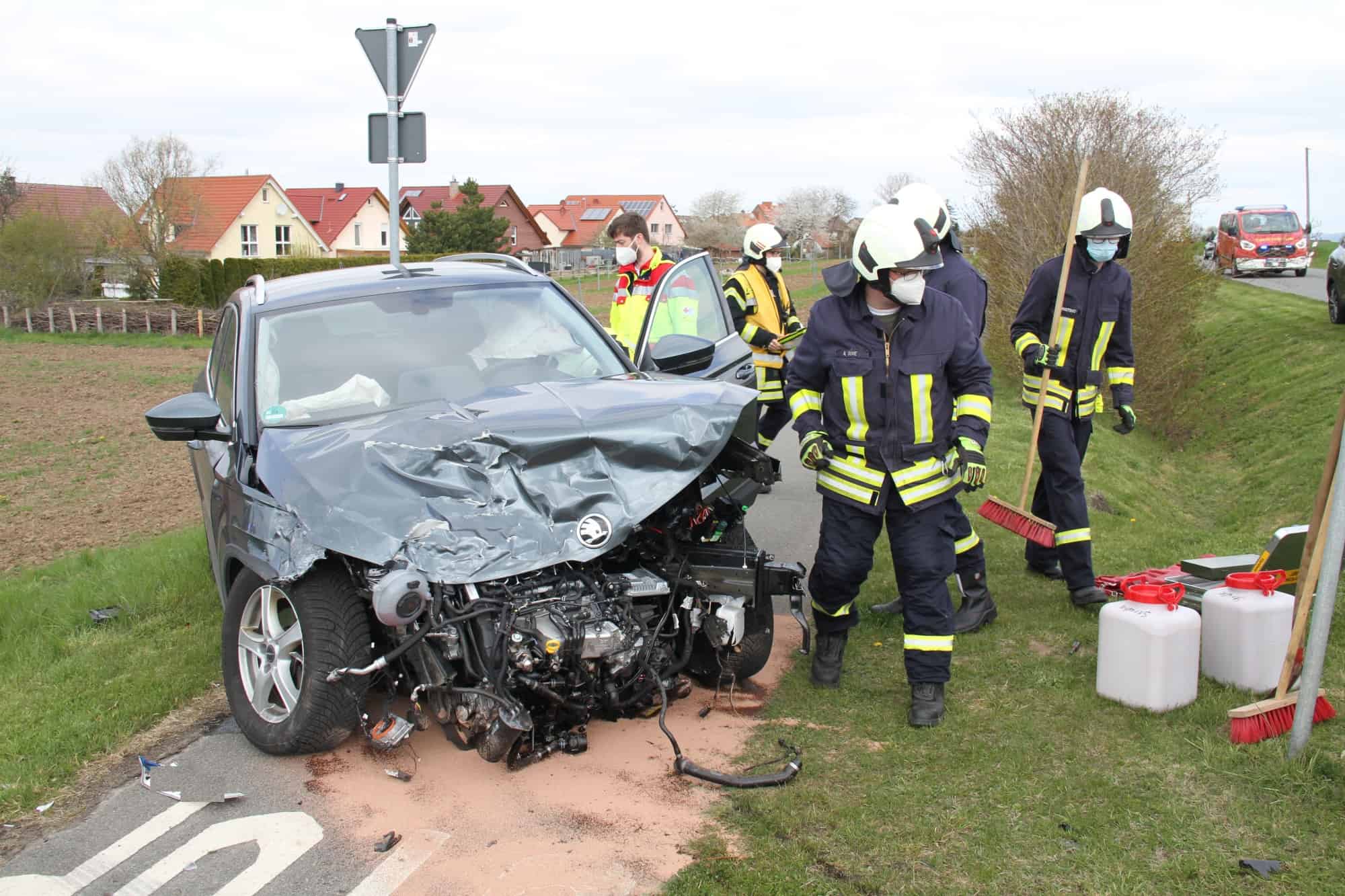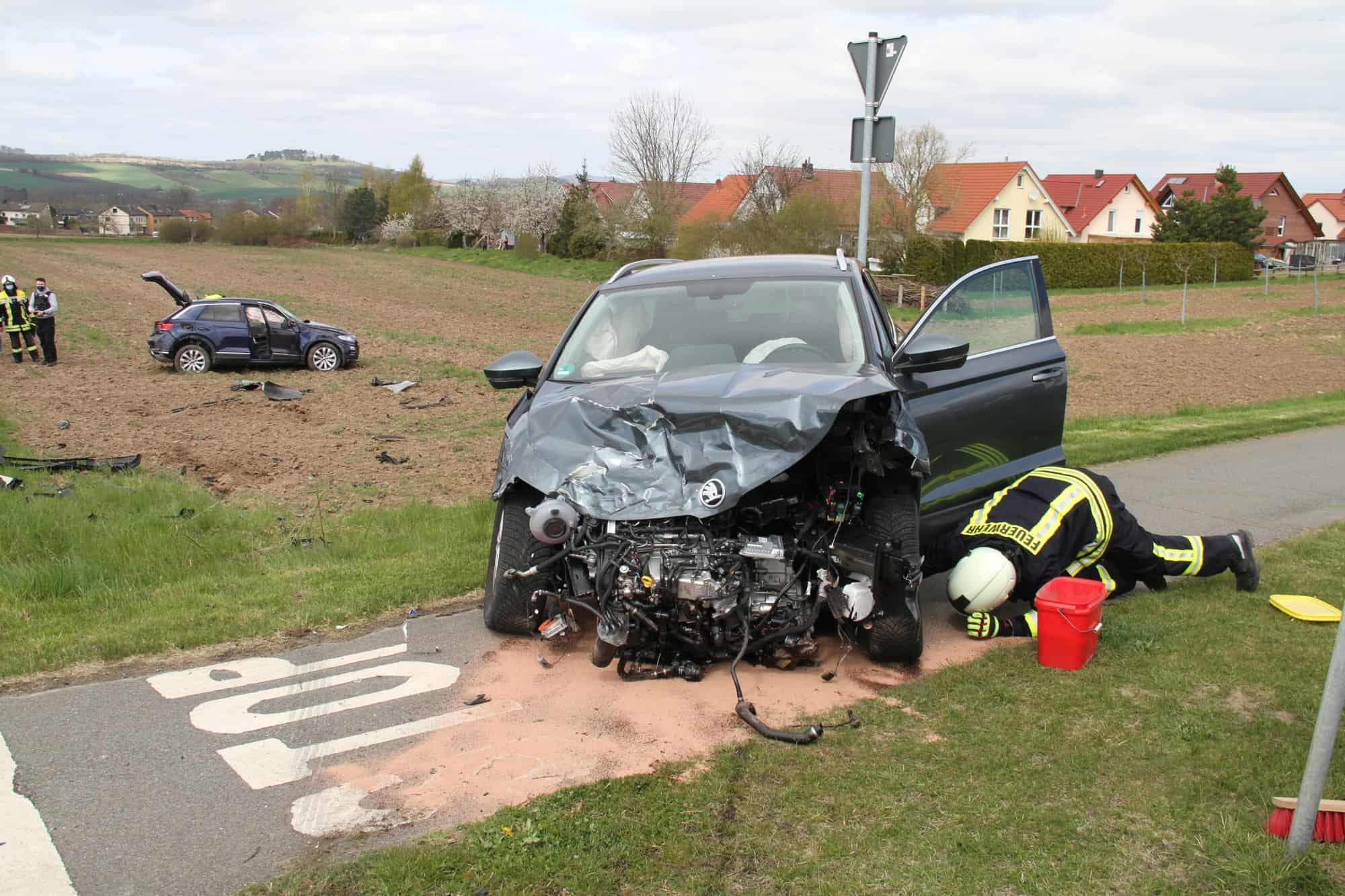 Die Unfallursache ist noch nicht genau bekannt. Ein VW und ein Skoda sind im Kreuzungsbereich zusammengestoßen. Bei dem Aufprall schleuderte der VW auf ein angrenzendes Feld und der Skoda auf einen Fahrradweg. Ein in der Nähe wohnender Notfallsanitäter und eine zufällig vorbeikommende auswärtige Krankenwagenbesatzung, leisteten sofort Erste Hilfe bis der Notarzt und die Rettungswagen aus Northeim und Nörten-Hardenberg an der Einsatzstelle angekommen waren. Die verletzten Personen wurden mit Rettungswagen in die umliegenden Krankenhäuser nach Northeim und Göttingen gebracht.