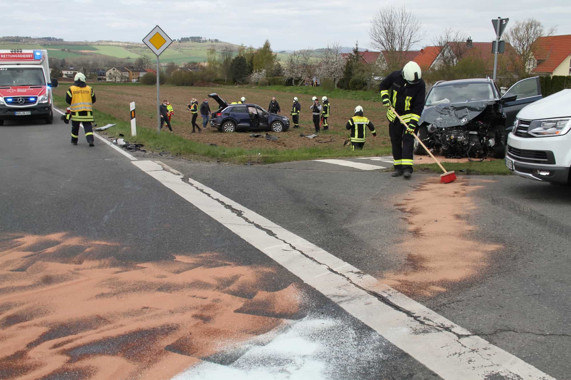 Sudheim (hl) Im Kreuzungsbereich der Kreisstraße 414 und 421 bei Sudheim ereignete sich am 24.04.2021 gegen 11:46 Uhr ein Verkehrsunfall mit drei verletzten Personen und einem Sachschaden von 60.000 Euro so die Polizei.