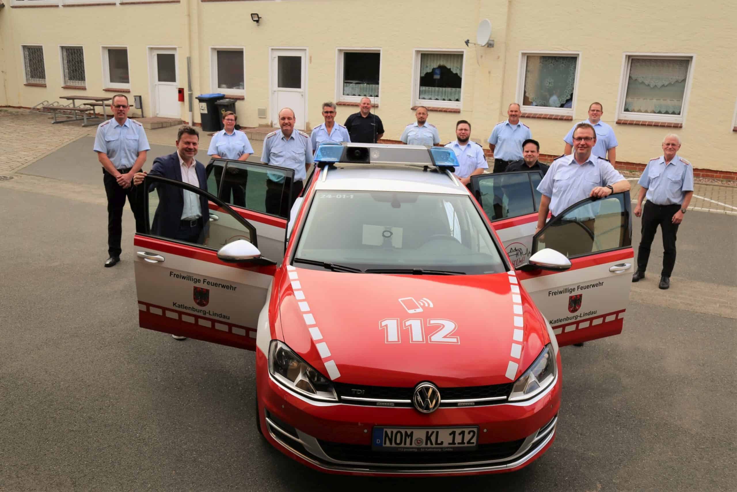 Katlenburg – Lindau Bürgermeister Uwe Ahrens hatte diverse Gäste zur feierlichen Fahrzeugübergabe eines Kommandowagens (KdoW) zum Feuerwehrhaus Katlenburg eingeladen.Der über die in der Feuerwehrverordnung vorgeschriebene Ausstattung hinaus vorgehaltene Kommandowagen des Gemeindebrandmeisters war Anfang des Jahres nicht mehr wirtschaftlich reparabel und wurde nun durch einen neuen – guten gebrauchten – Kommandowagen im Wert von rund 14.500 Euro ersetzt.