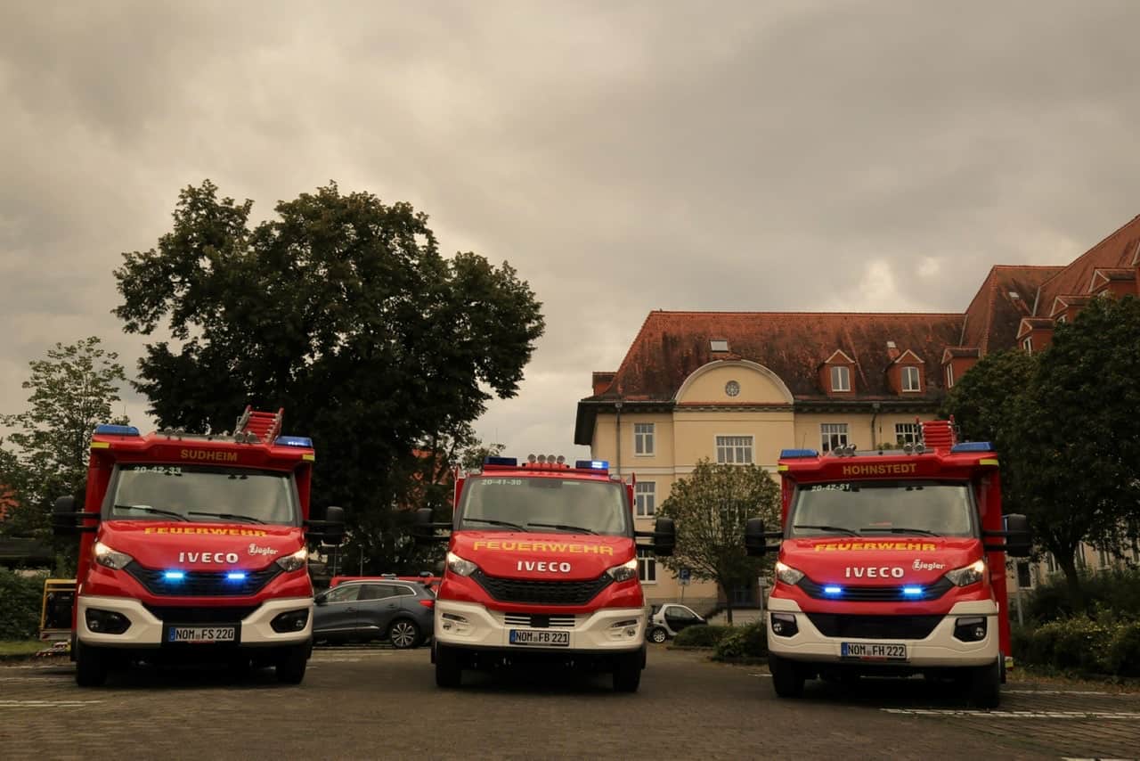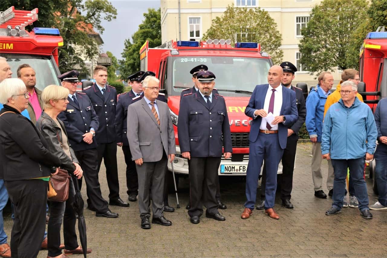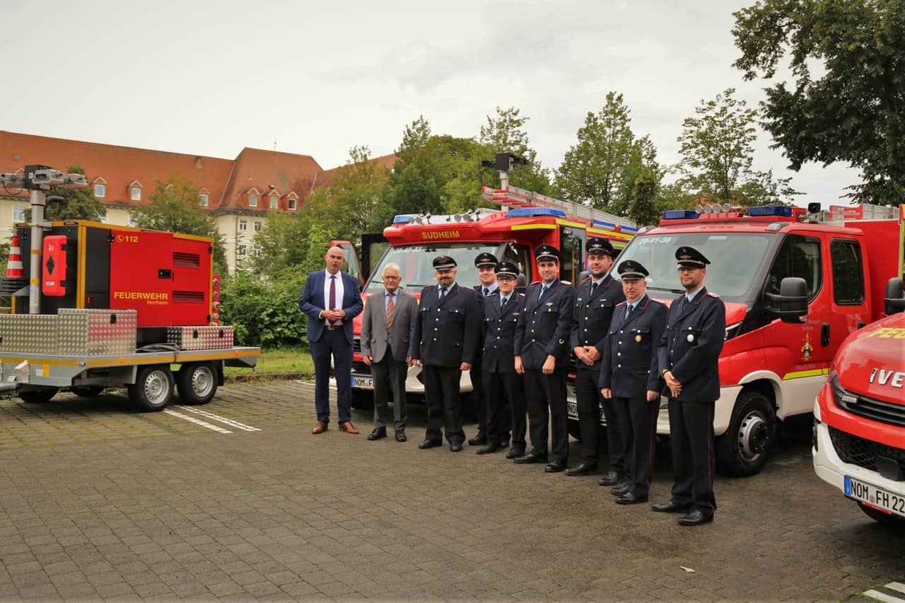Die Stadt Northeim konnte jetzt auf dem Scharnhorstplatz zwei Mittlere Löschfahrzeuge und ein Tragkraftspritzenfahrzeug für die Feuerwehren aus Bühle, Hohnstedt und Sudheim übergeben. Ein Stomerzeuger mit 60 kVA ist für den Katastrophenschutz ab sofort bei der Feuerwehr Northeim stationiert.