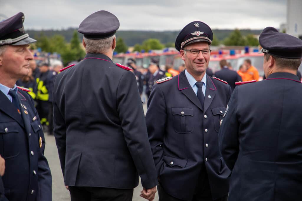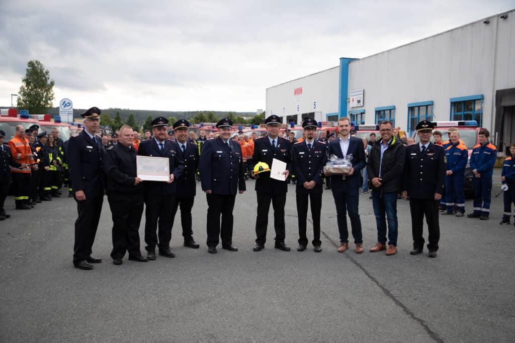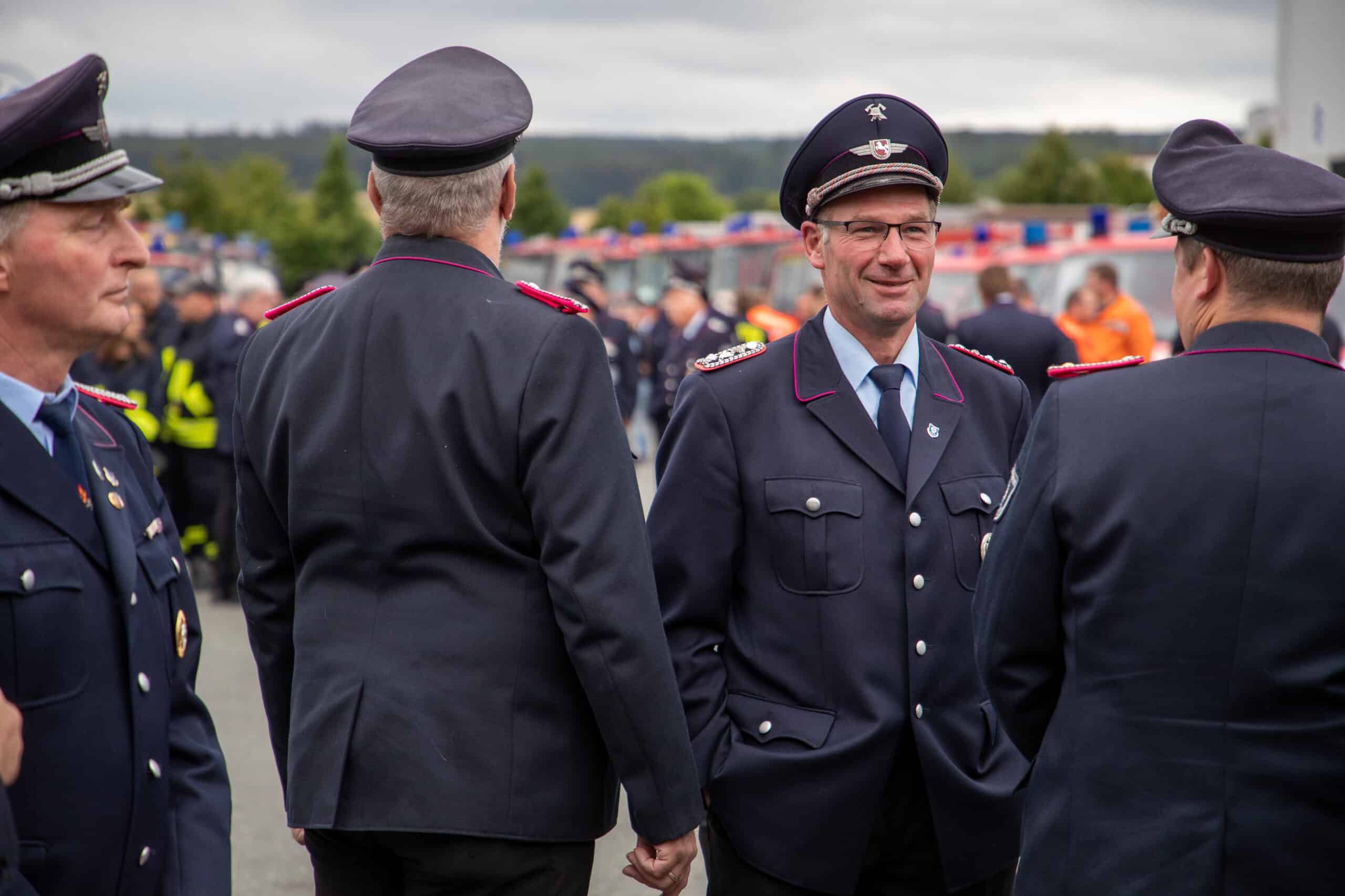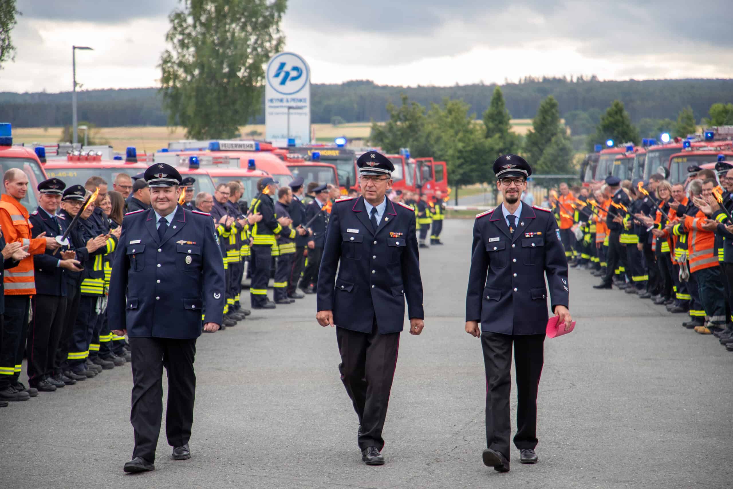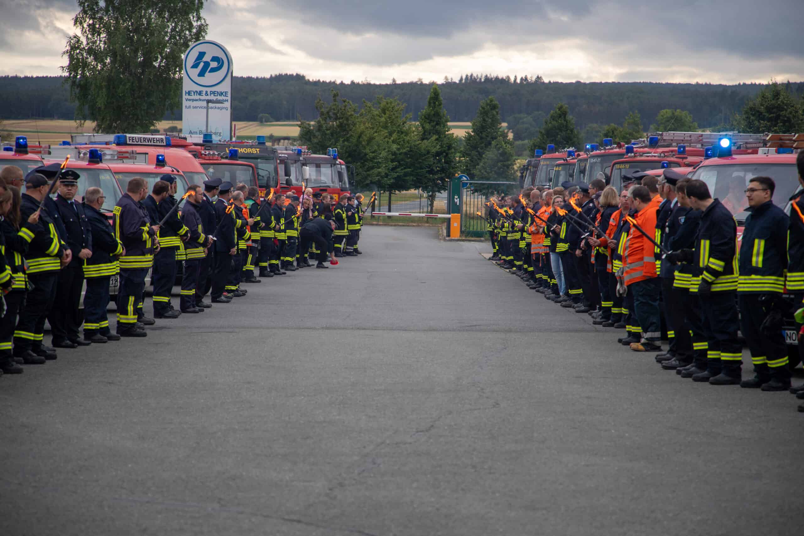 Das Fahrziel von Harald Sehl, bis Juni Stadtbrandmeister in Dassel, sowie vom Amtsnachfolger Maik Pfeiffer und Stellvertreter Tobias Oppen war eigentlich die Stadtkommandositzung – der Zwischenstopp bei Heyne und Penke war aber von langer Hand geplant. Vertreter aller Ortsfeuerwehren und der Jugendfeuerwehr standen entlang von 30 Einsatzfahrzeugen Spalier, um ihre Feuerwehr-Führung gebührend zu verabschieden.