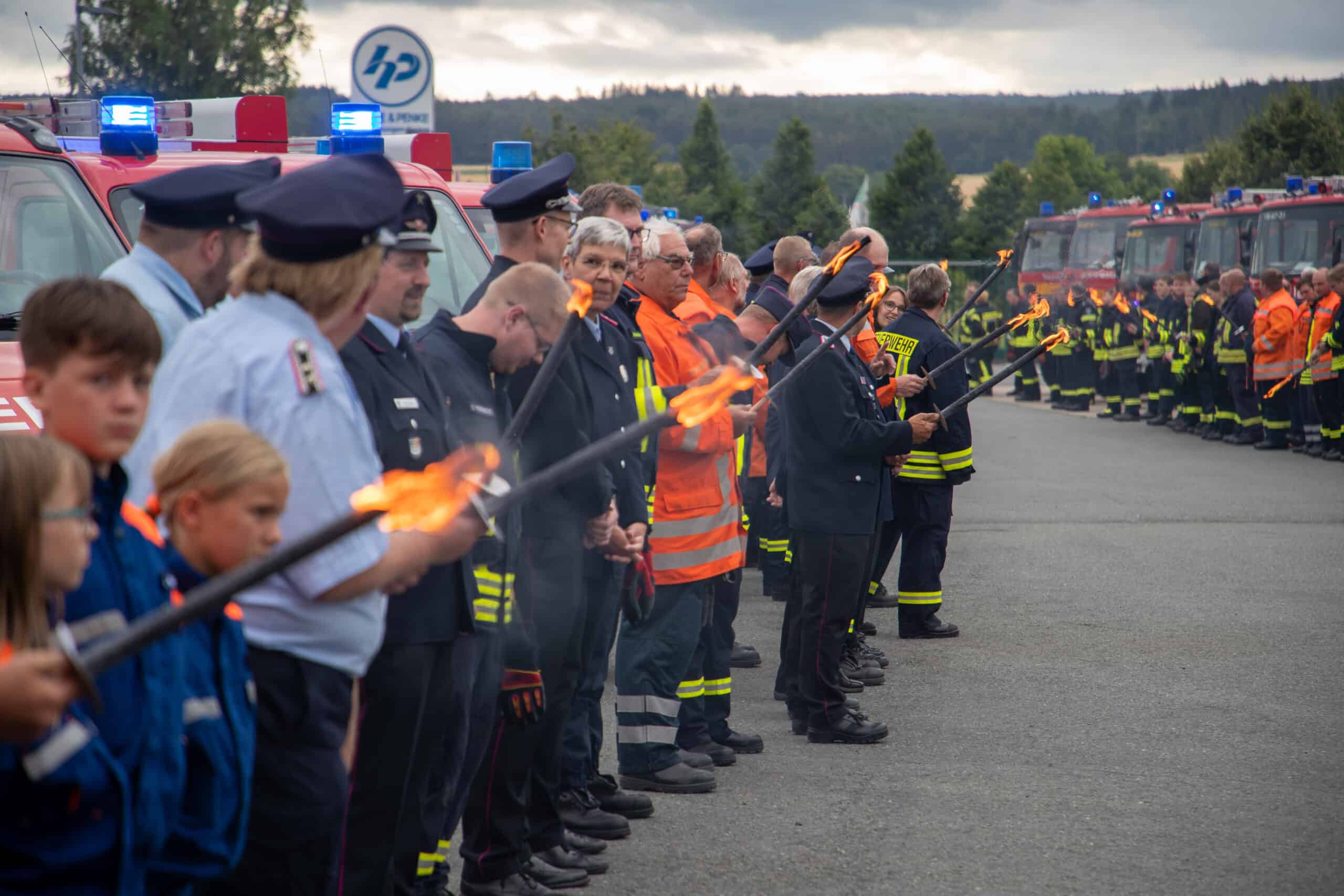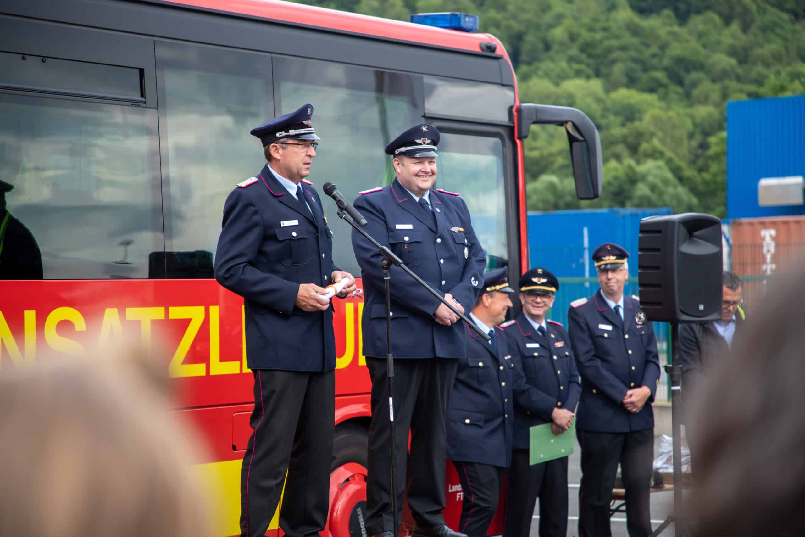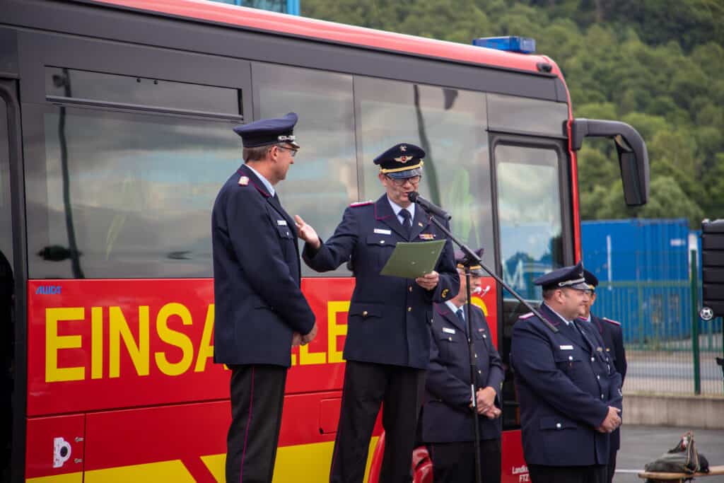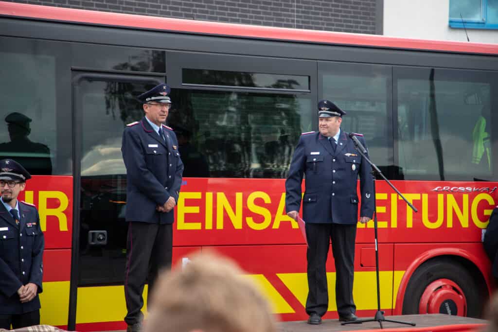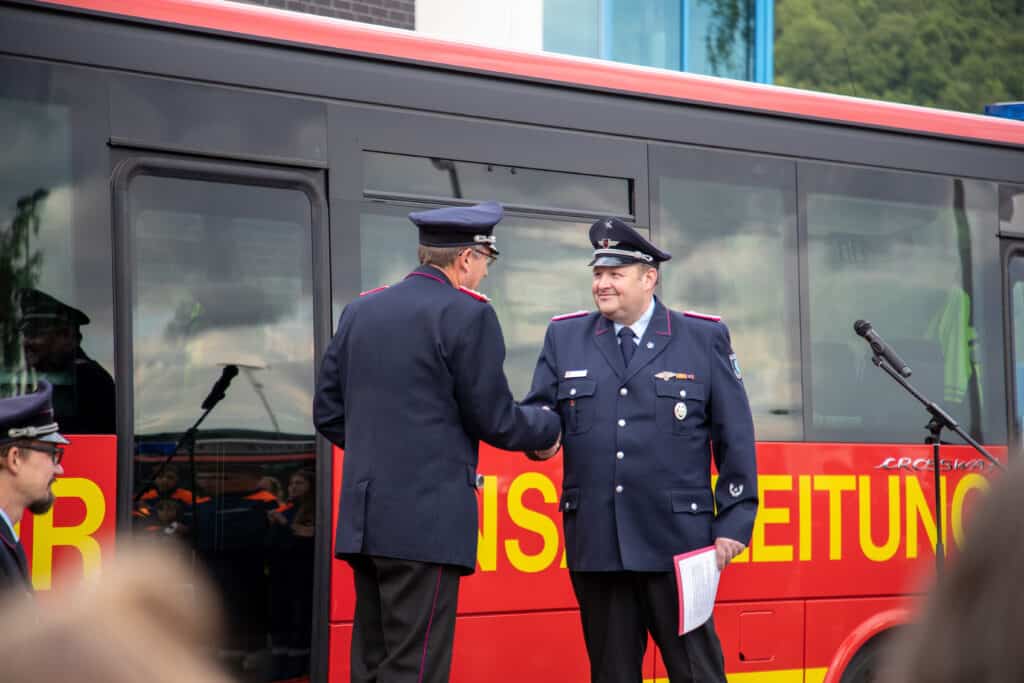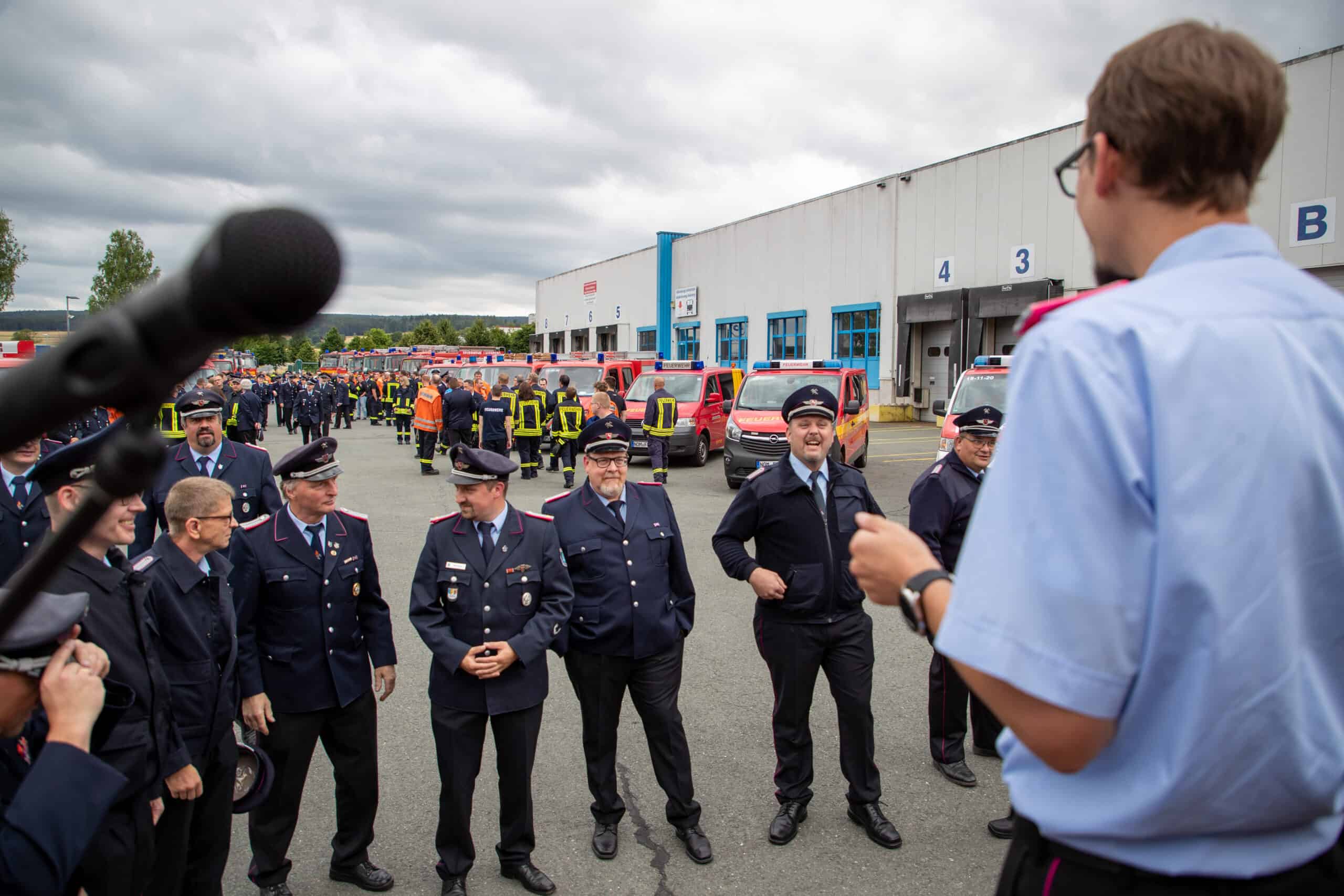 Das Fahrziel von Harald Sehl, bis Juni Stadtbrandmeister in Dassel, sowie vom Amtsnachfolger Maik Pfeiffer und Stellvertreter Tobias Oppen war eigentlich die Stadtkommandositzung – der Zwischenstopp bei Heyne und Penke war aber von langer Hand geplant. Vertreter aller Ortsfeuerwehren und der Jugendfeuerwehr standen entlang von 30 Einsatzfahrzeugen Spalier, um ihre Feuerwehr-Führung gebührend zu verabschieden.