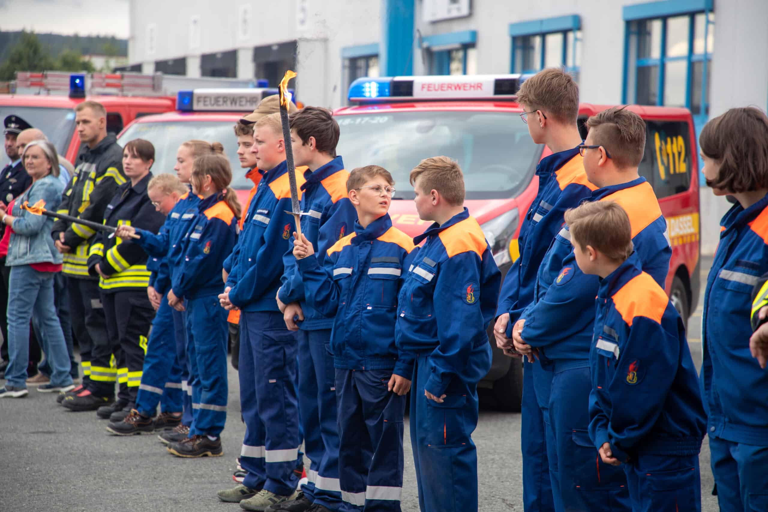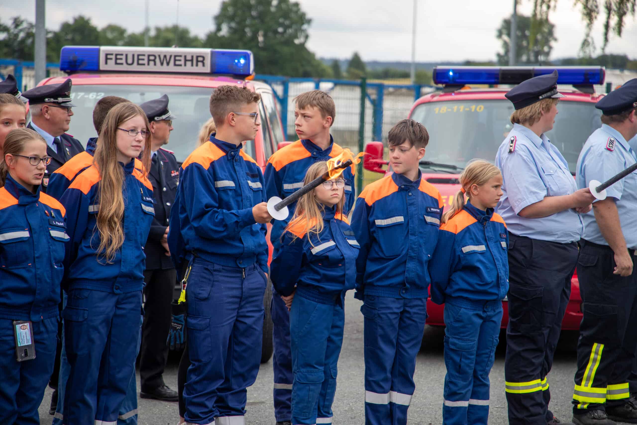 Viel Applaus gab es auf dem Weg zur eigens für den Abend aufgebauten Bühne. Stadtbrandmeister Maik Pfeiffer betonte, dass Harald Sehl auch in schwierigen finanziellen Zeiten der Stadt Dassel stets versucht hat, “das Beste für unsere Feuerwehren herauszuholen”. Dafür gab es viel Applaus. Für die Kinder- und Jugendfeuerwehren der Stadt dankte die Stadtjugendfeuerwehrführung um Niklas Schewe-Schweiß und Tobias Zeika dem scheidenden Harald Sehl mit einem Präsentkorb.
