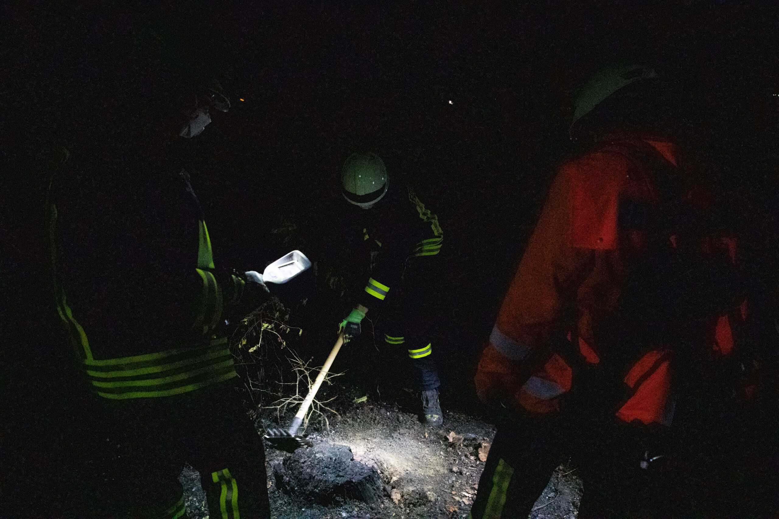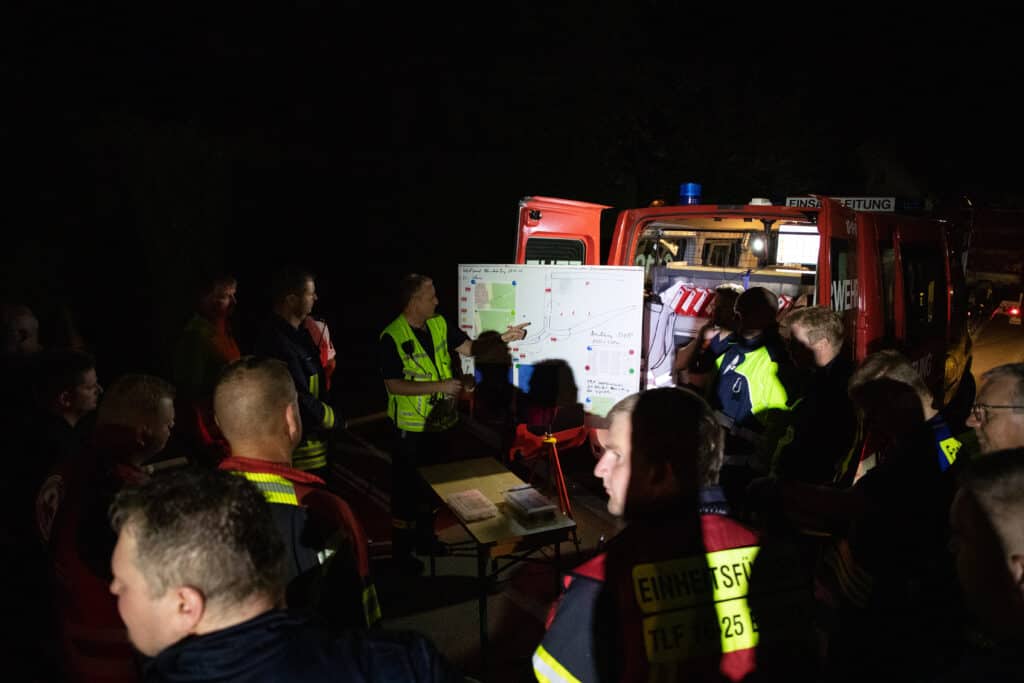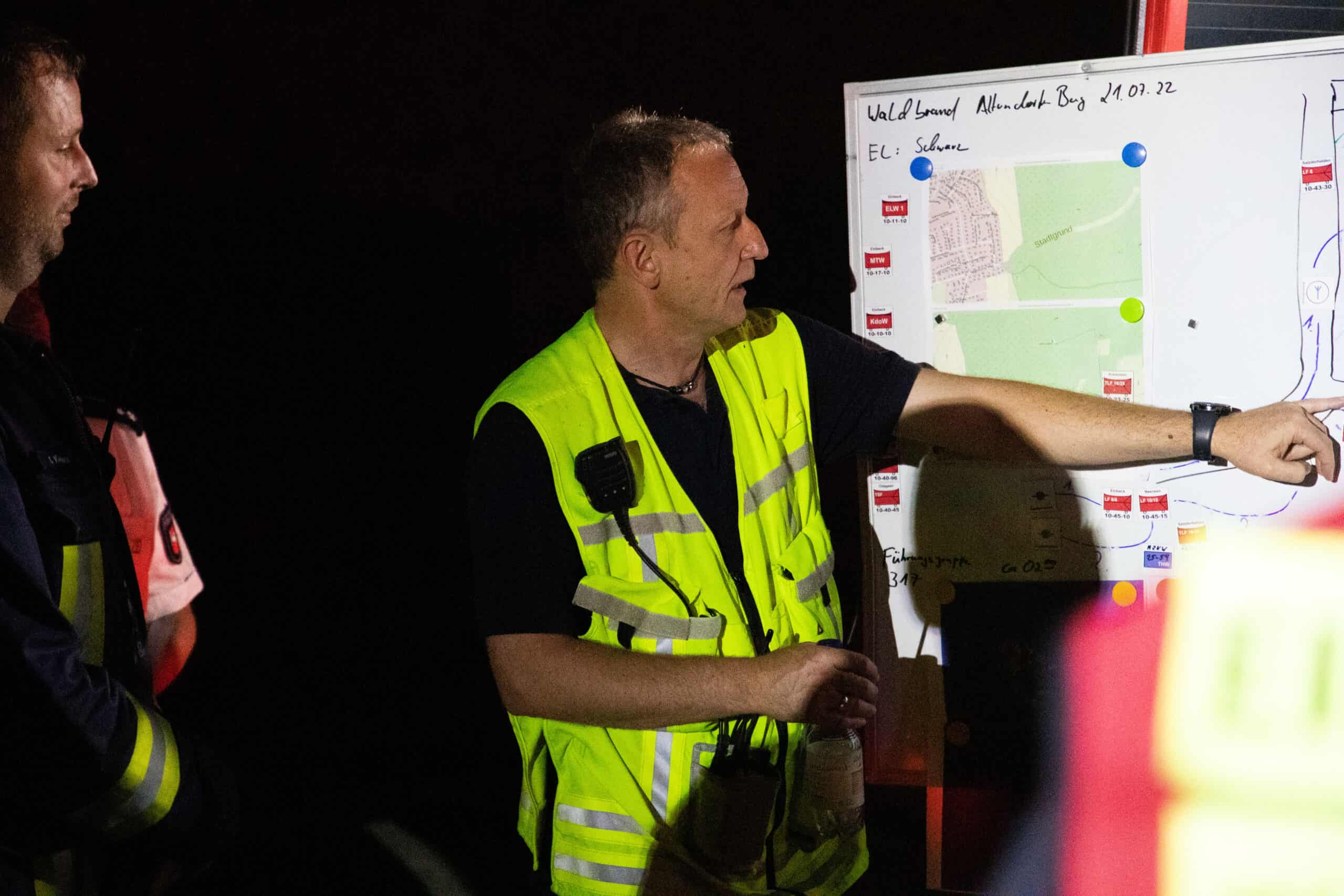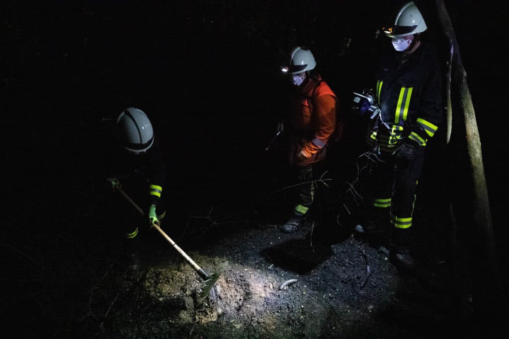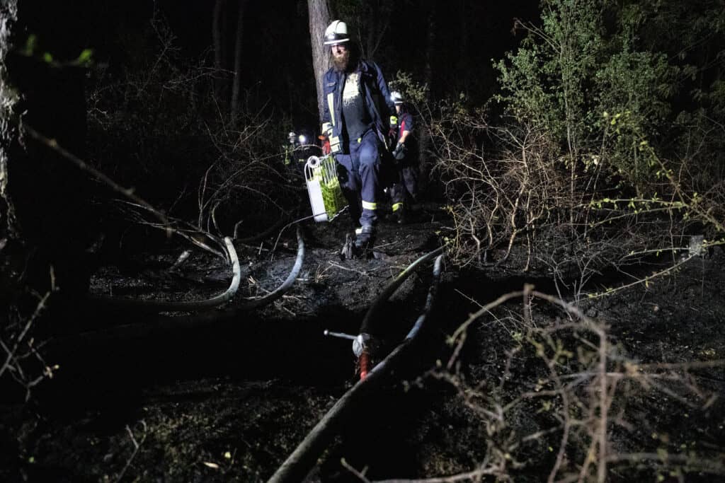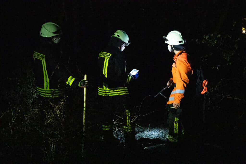 Aufgrund des bis in den Morgen laufenden Einsatzes wurden die Kräfte vom DRK verpflegt. Ab dem Morgen soll die Forst die Einsatzstelle übernehmen. Bis dahin wird sie unter anderem mit Wärmebildkameras kontrolliert und verbliebene Glutnester abgelöscht.