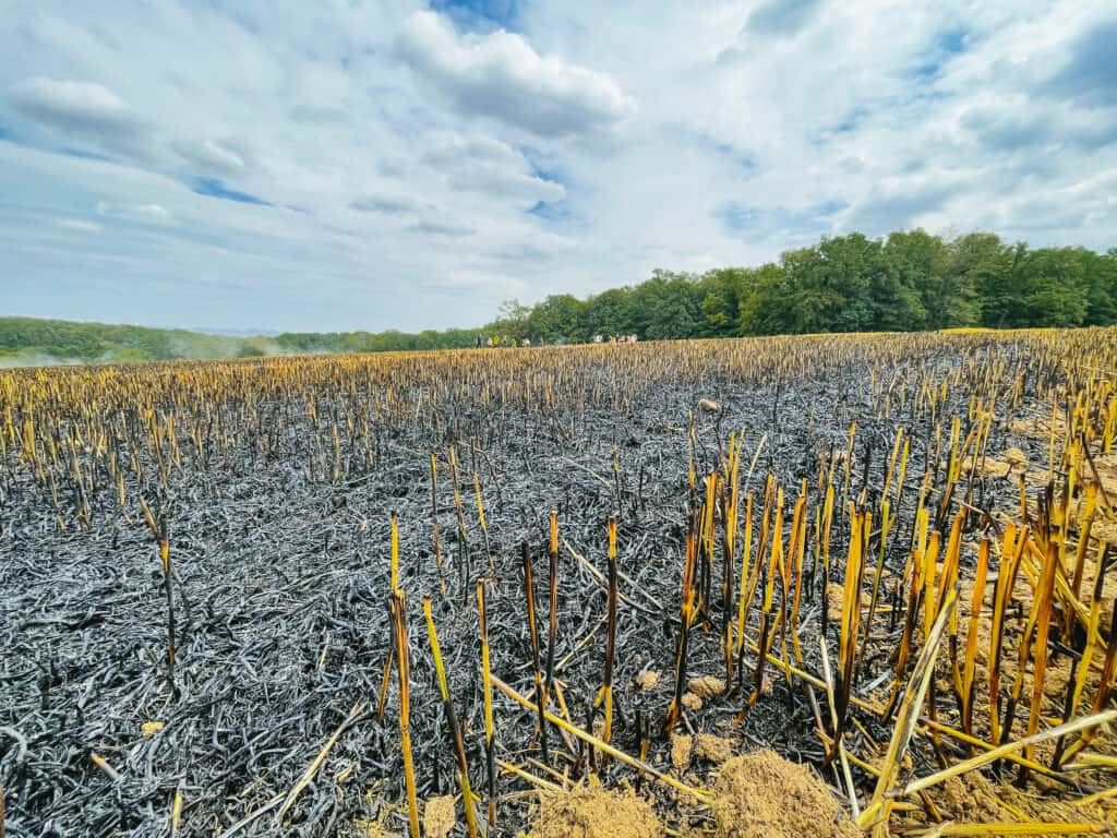 Mit vier Strahlrohren sowie diversen Löschrucksäcken und Feuerpatschen wurde daher Brand eingedämmt. Drei Landwirte haben mit Grubbern dem Feuer final den Weg abgeschnitten. Das Deutsche Rote Kreuz hat den Eigenschutz für die Einsatzkräfte übernommen und einen Patienten behandelt.