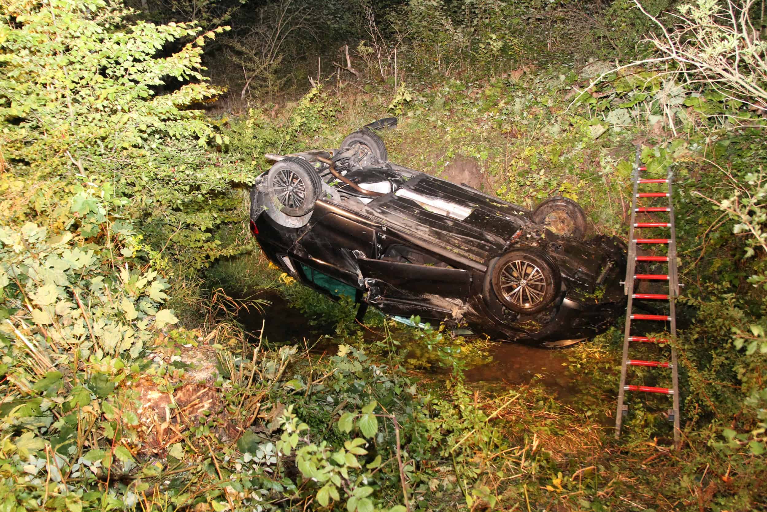 Nörten-Hardenberg (hl) Am Freitagabend des 09.09.2022 gegen 22:30 Uhr ereignete sich auf der Bundesstraße 446 Nörten-Hardenberg in Richtung Rodetal ein schwerer Verkehrsunfall mit einer eingeklemmten Person. Die Feuerwehr Nörten-Hardenberg Mitte, der Rüstwagen der Feuerwehrtechnischen Zentrale Northeim, der Notarzt aus Northeim und der Rettungswagen des Arbeiter-Samariter-Bund aus Nörten-Hardenberg wurden alarmiert. Die Person, die im Fahrzeug eingeklemmt war und mit dem Fahrzeugdach im dortigen Bachlauf lag, wurde von den Rettungskräften mit Hydraulischen Rettungsgeräten aus dem Fahrzeug befreit. Die Person verstarb laut Polizei noch am Unfallort. Die Bundesstraße 446 wurde während des Einsatzes bis ca. 02: 00Uhr voll gesperrt. An dem PKW-Golf entstand ein Sachschaden von 15.000 Euro. An dem Einsatz waren etwa 20 Einsatzkräfte von Feuerwehr, Rettungsdienst und Polizei beteiligt.