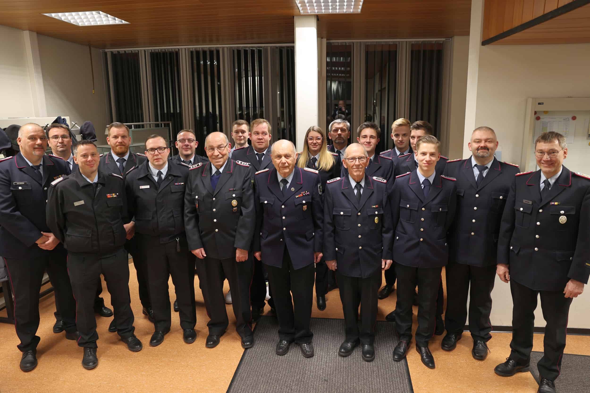 Die Ernennungen, Ehrungen und Beförderungen nahmen der Stellvertretende Abschnittsleiter Dirk Spiller, Stadtbrandmeister Bernhard Krzepina und Ortsbrandmeister Rouven Goldberg vor: