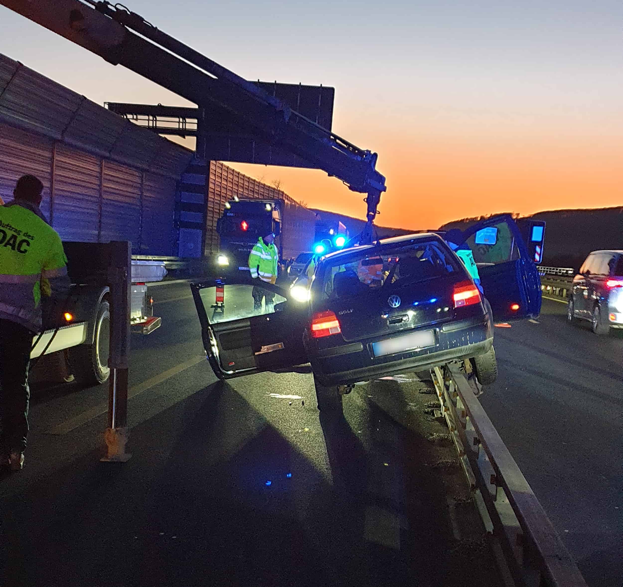 A7 bei Echte: Auto landet auf Mittelleitplanke