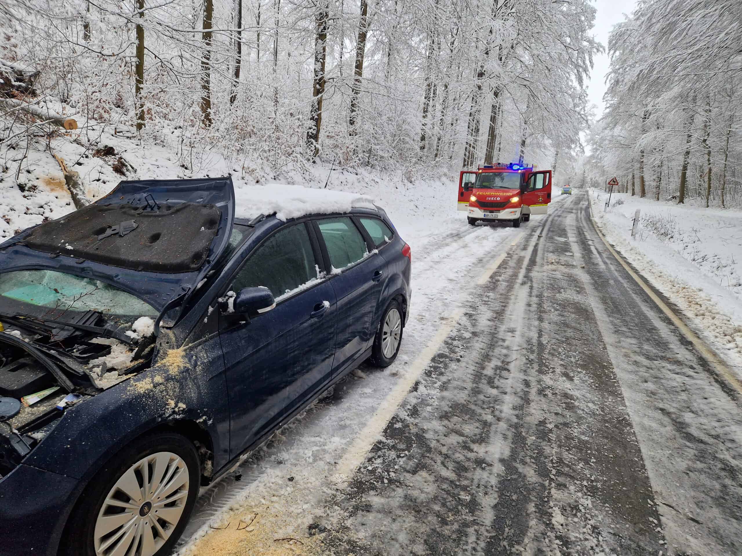 Verkehrsunfälle, blockierte Straßen und umgestürzte Bäume: der Schneefall in der Nacht zu Donnerstag forderte den Einsatz von Feuerwehr, Rettungsdienst und Polizei gleich mehrfach.