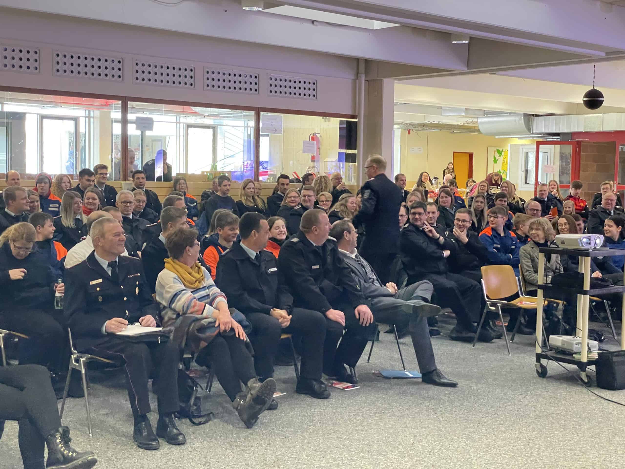 Jörg Richert, Erster Kreisrat im Landkreis Northeim, verwies in seinem Grußwort auf die erst kürzlich beendete fünfte Jahreszeit. „Eines der beliebtesten Kostüme im Karneval ist das der Feuerwehrfrau und des Feuerwehrmannes“, sagte Richert. Im Kreis Northeim gebe es aber unzählige Menschen, die ganzjährig ihre Einsatzkleidung tragen. „Dieses Engagement von Kindesbein an ist in unserem Landkreis großartig, auf das starke Team dahinter sind wir stolz.“