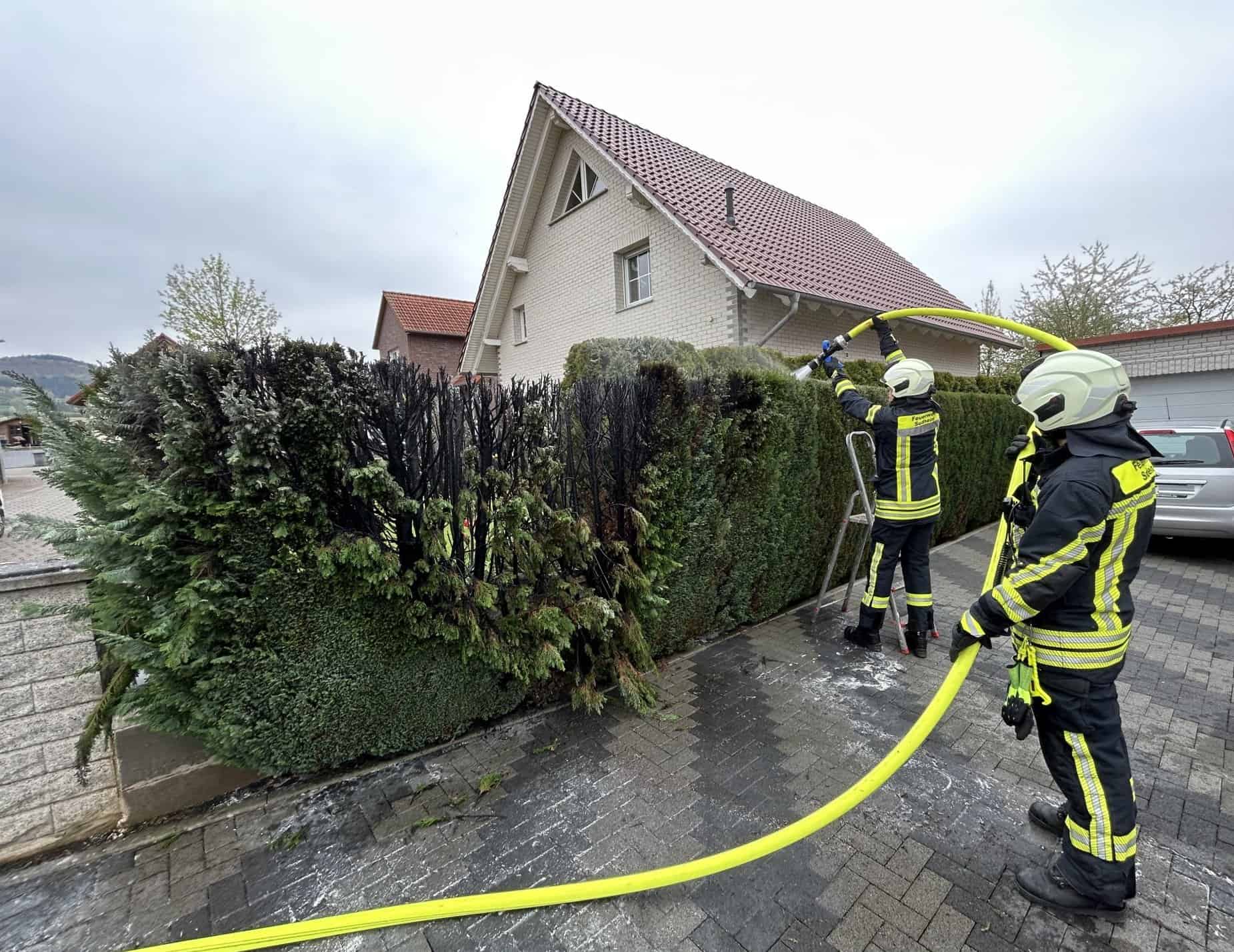 Sudheim (hl) Die Ortsfeuerwehren Sudheim und Bühle wurden am 28.04.2023 gegen 14:48 Uhr über Sirene und Funkmeldeempfänger zu einem Brandeinsatz alarmiert. In Sudheim „An der Bülte“ hatte ein Hausbewohner in seinem Garten Arbeiten vorgenommen als er plötzlich Qualm aus seiner Haushecke bemerkte. Sofort holte er eine Gießkanne mit Wasser um die Flammen damit zu löschen. Aufmerksame Nachbarn, die dieses auch bemerkten, verständigten über den Notruf die Feuerwehr und begaben sich mit Feuerlöschern zuder brennenden Hecke. Die Feuerwehrkräfte aus Sudheim, die mit ihrem Mittleren Löschfahrzeug und einem Mannschaftstransportfahrzeug eingetroffen waren, konnten den Bühler Kameradinnen und Kameraden über Funk Entwarnung geben. Das Feuer war aus. Von dem Mittleren Löschfahrzeug Sudheim wurde dann noch ein C-Schlauch verlegt und ein Feuerwehrmann nahm Nachlöscharbeiten vor. Anschließend wurde die Hecke mit einer Wärmebildkamera nach Brandnestern kontrolliert. Im Einsatz waren 10 Feuerwehrkräfte von Sudheim. Nach etwa 30 Minuten war der Einsatz beendet.