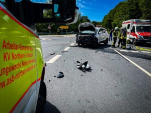 Entgegen der ersten Meldung wurden glücklicherweise keine Personen in ihren Fahrzeugen eingeklemmt. Die drei Verletzten wurden durch die Feuerwehr betreut und durch den Rettungsdienst versorgt.