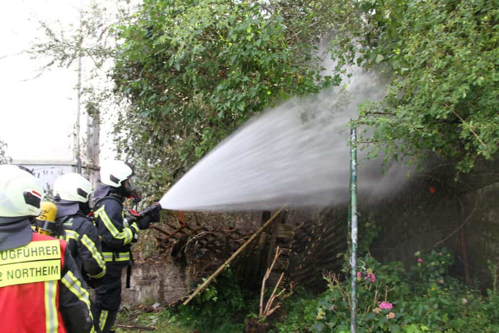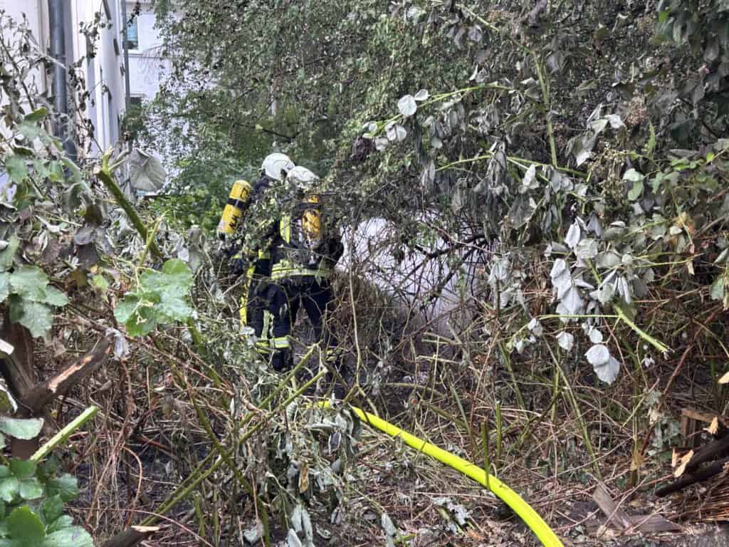 Zu einem ausgedehnten Heckenbrand wurde die Ortsfeuerwehr Northeim am Nachmittag des 13.07.2023 von der Leitstelle Northeim alarmiert. Am Ende der Heinrichstraße brannte aus ungeklärter Ursache an einem Wall, der zur Bahnanlage führt, eine größere Anzahl von Sträuchern, kleine Bäumen, Büsche, dort abgelegte Matratzen und Müll. Um an den Brandherd heranzukommen, mussten Feuerwehrleute mit Motor-Kettensägen erst einen Weg durch das Gestrüpp freisägen. Der Löschangriff wurde anschließend mit jeweils einem C-Rohr von der Heinrichstraße und der Frankenbergstraße mit Feuerwehrleuten unter Atemschutz vorgenommen.