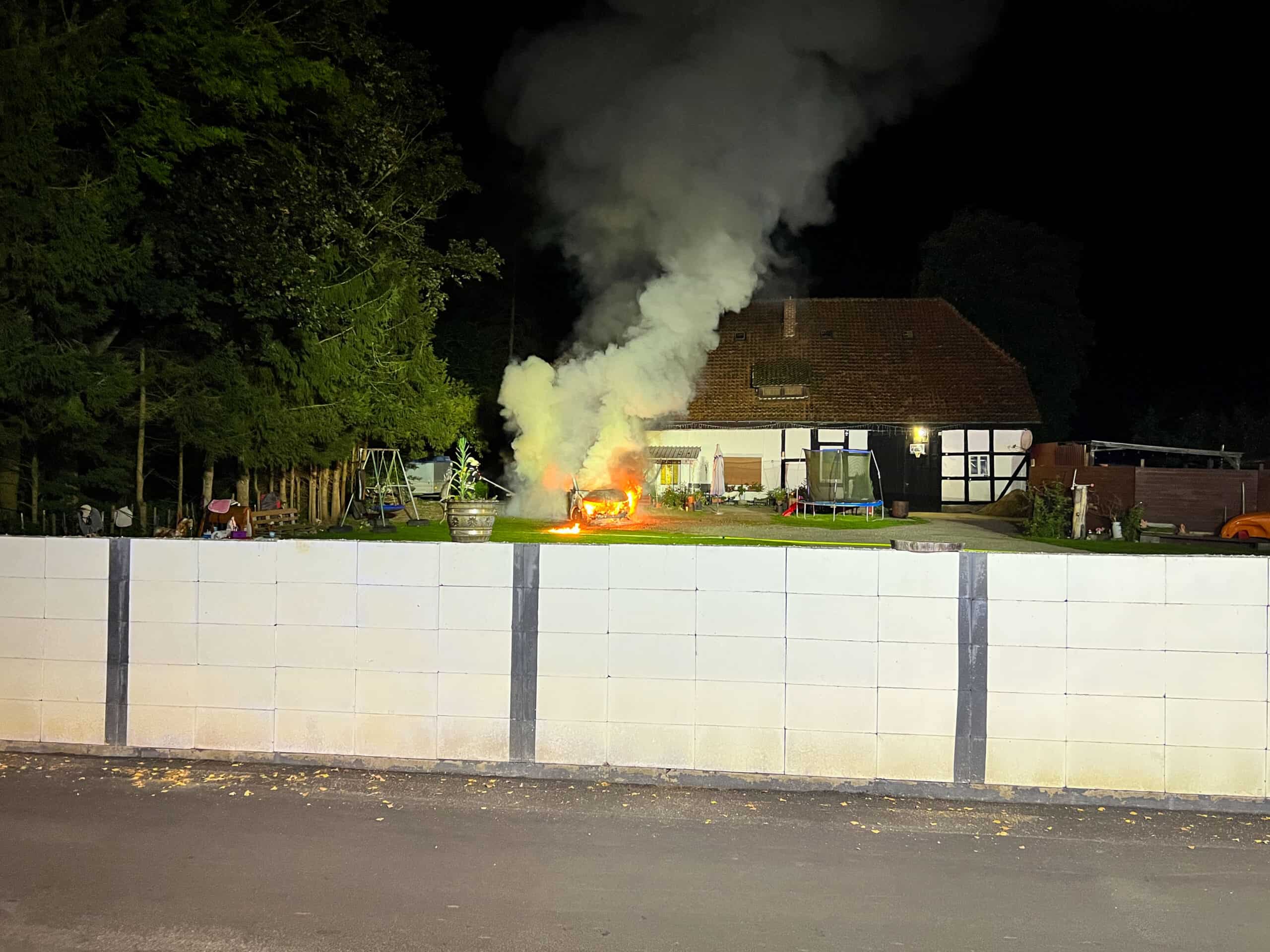 Willershausen, 15.09.2023 – In der Nacht zu Freitag, dem 15. September, wurden die Feuerwehren aus Willershausen, Echte und Kalefeld zu einem in Vollbrand stehenden PKW nach Willershausen alarmiert.