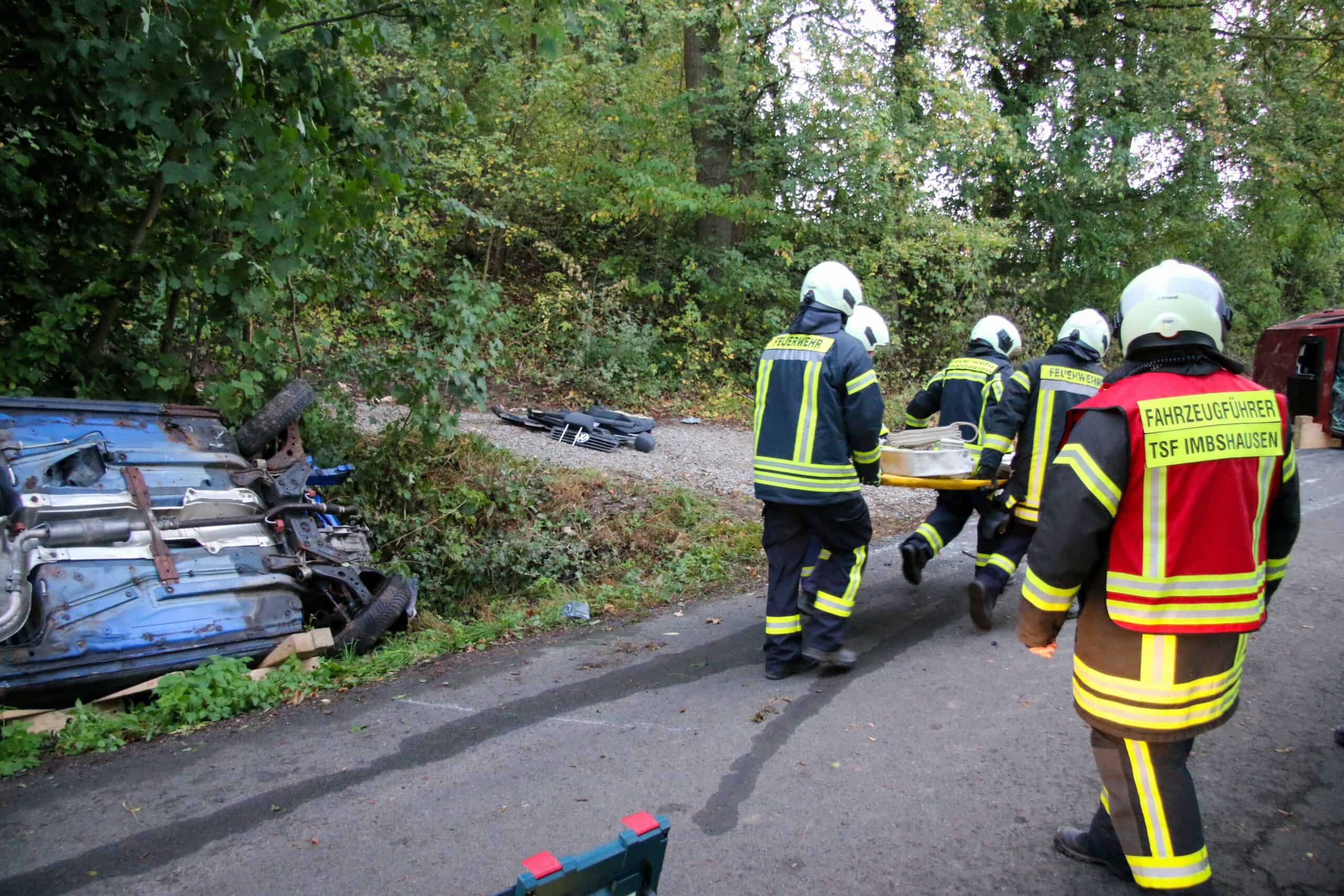 In den zwei verunfallten PKW, welche Frontal ineinander gefahren sind, waren drei Personen eingeklemmt. Eine weitere Person war flüchtig – so die angenommene Lage. Schnell konnten die auf der Seite liegenden Fahrzeuge gesichert werden um anschließend mit der technischen Rettung zu beginnen. Innerhalb kürzester Zeit konnten nun auch die „verletzten“ Personen aus den Fahrzeugen befreit und dem Rettungsdienst übergeben werden.