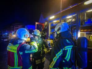 Beim Eintreffen des Brandmeisters vom Dienst stand der Anbau über drei Etagen im Vollbrand. Umgehend wurde das Alarmstichwort auf „Gebäudebrand“ erhöht und weitere Kräfte für den Einsatz alarmiert.