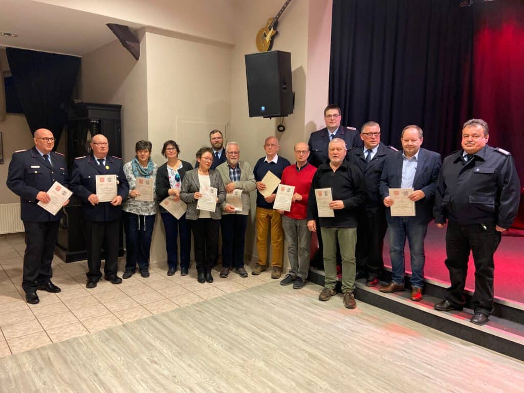 Der Feuerwehrverein konnte langjährige Mitglieder auszeichnen. Seit 50 Jahren Mitglied ist die Volksbank eG, die dafür, in Vertretung durch Karsten Dielzer, ausgezeichnet wurde. Eine Ehrung für 40-jährige Mitgliedschaft bekamen Hans-Joachim Scholz, Angelika und Dietrich Kahle, Burkhard Meyer, Carsten Winkler, Burkhard Hachfeld sowie Maritta und Hubertus Rieger. Für 25 Jahre im Verein ausgezeichnet wurden Birgit Sackmann und Daniel Harries. Kreisbrandmeister Marko de Klein konnte Heiko Wechenberger für 14 Jahre Tätigkeit in der Kreisausbildung auszeichnen.