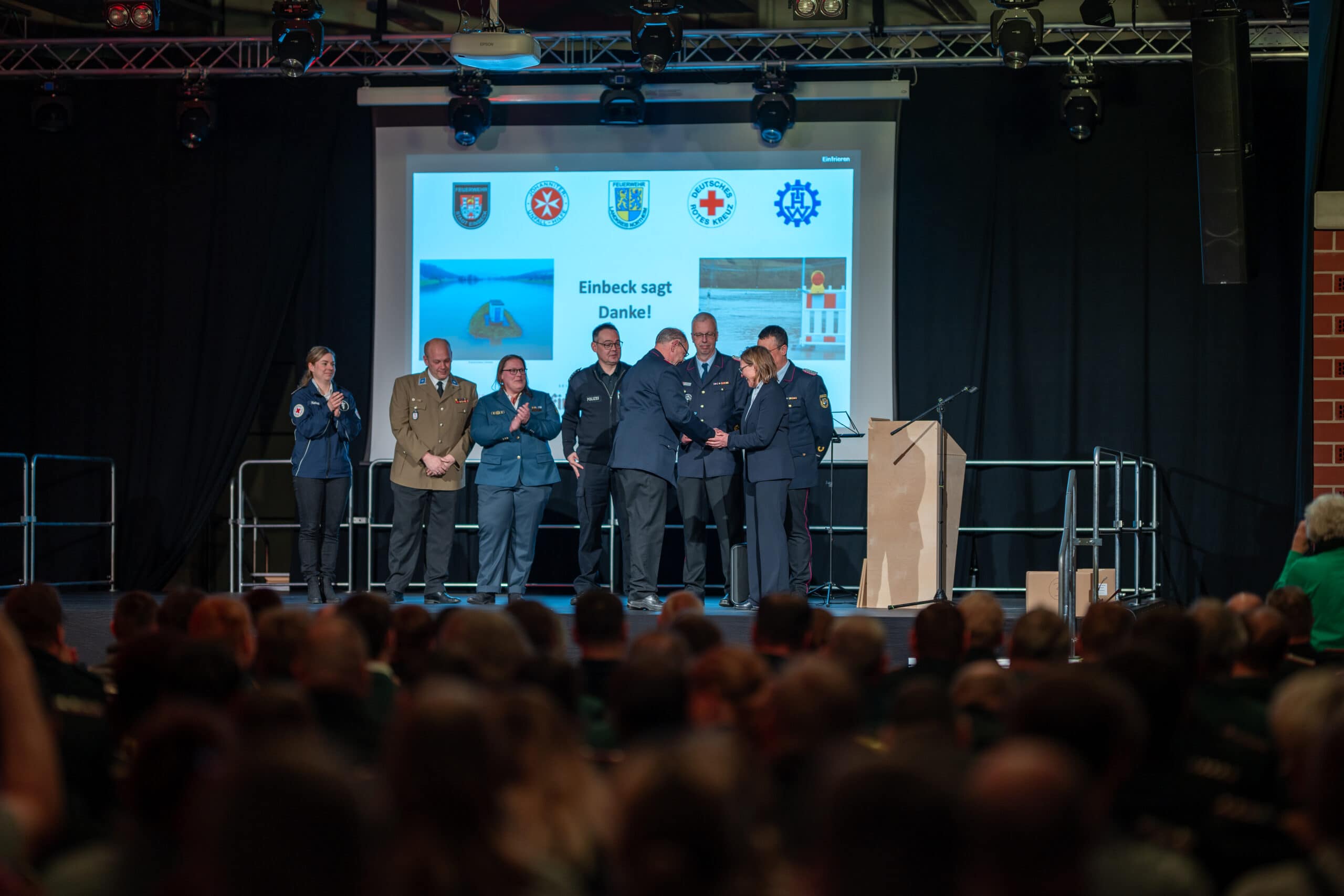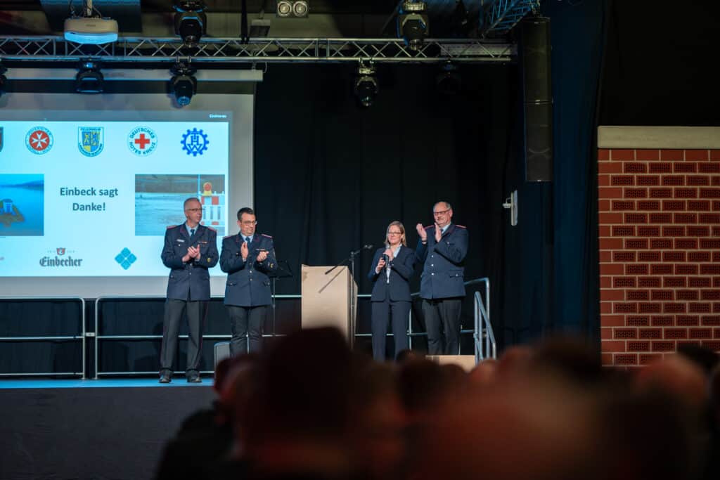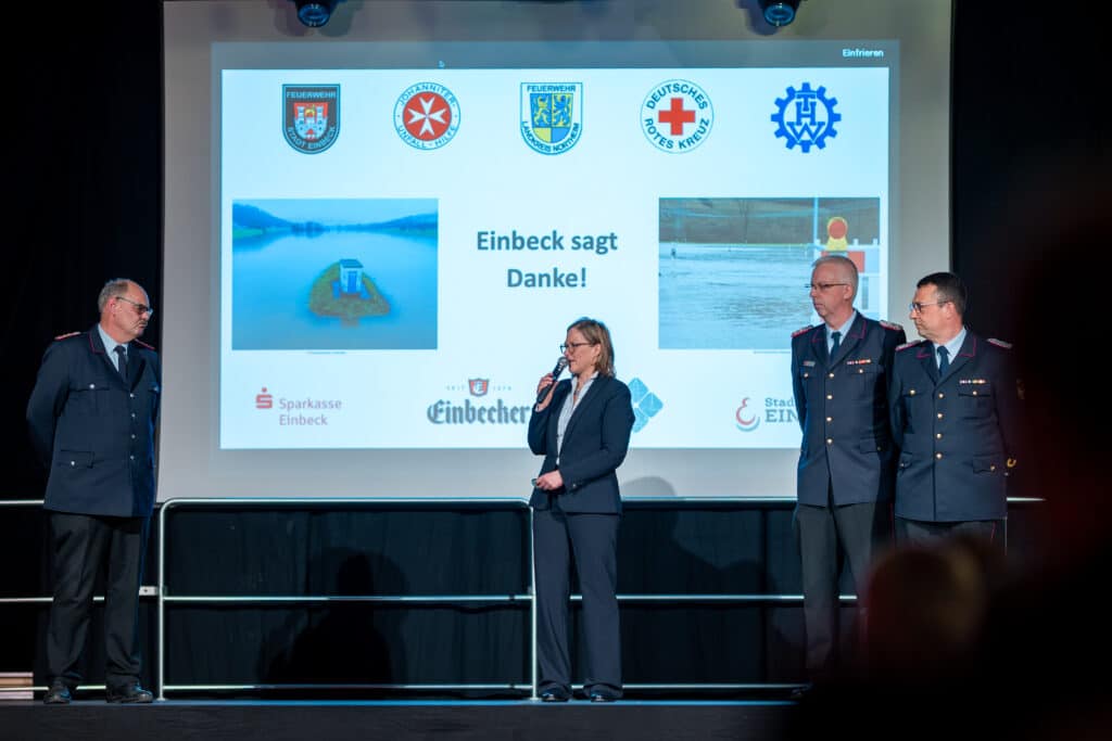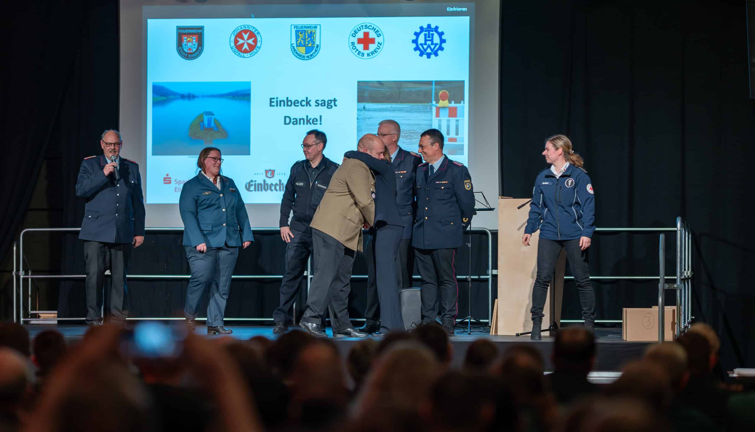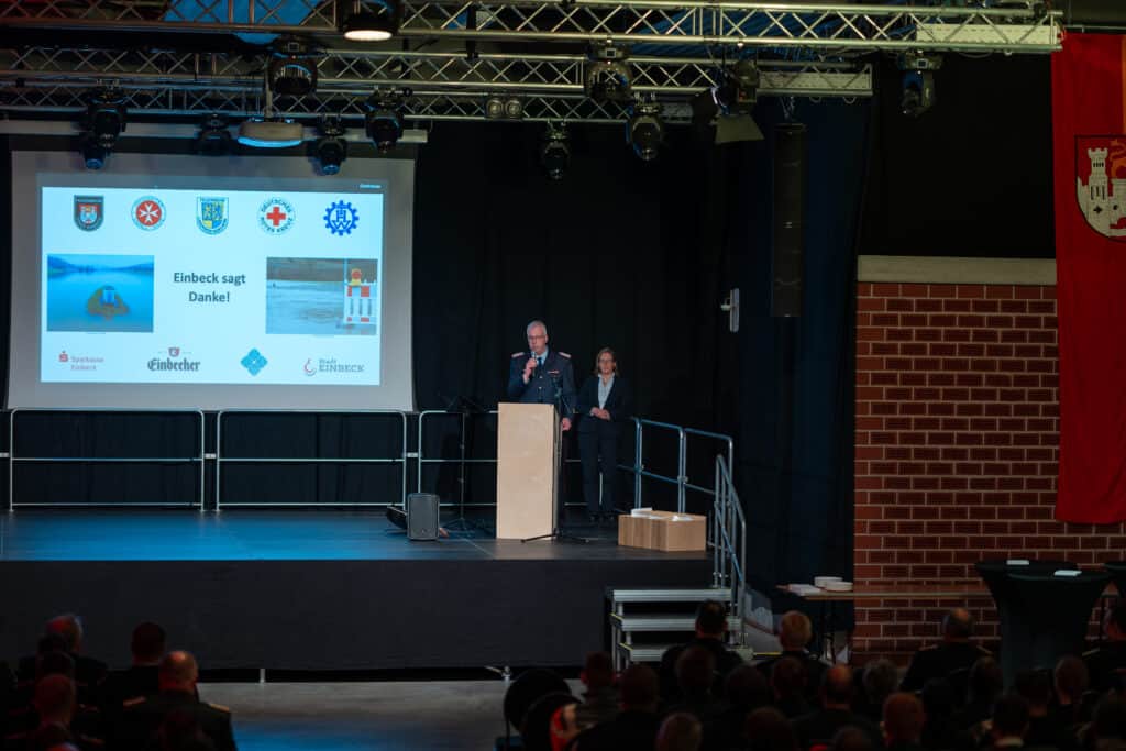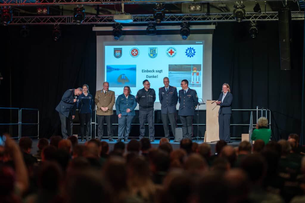 Das war ein würdiger Dank für den Einsatz an den Feiertagen: Die Stadt Einbeck hat mehr als 100 Helferinnen und Helfern am Montagabend in der Multifunktionshalle für ihren Einsatz während des Weihnachts-Hochwassers gedankt.