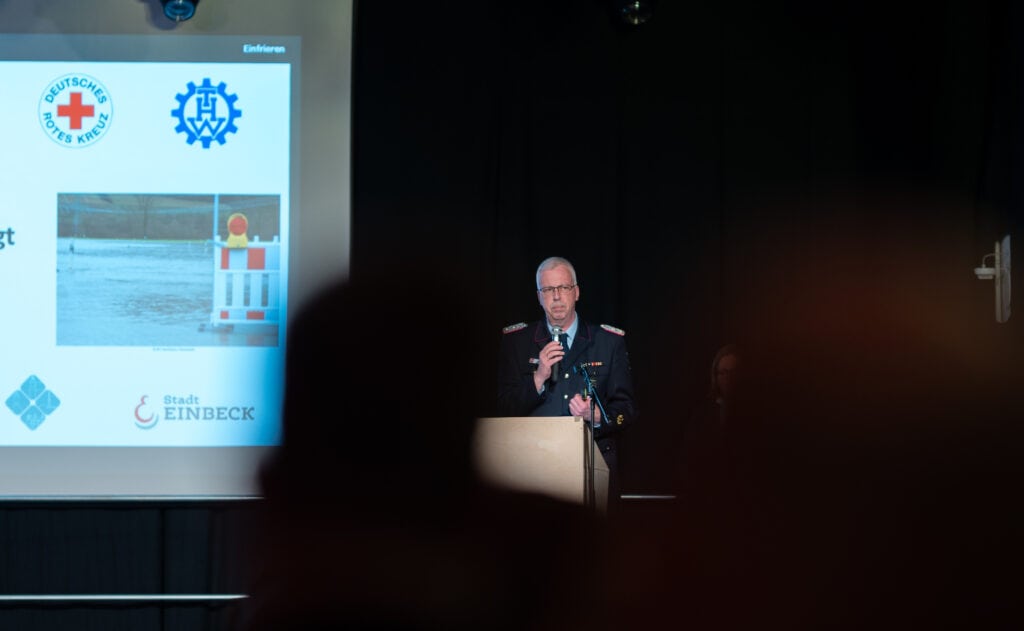 Weihnachten war anders, als man es gewohnt war. “Die Stimmung war bei Weihnachtsmusik, Keksen und teilweise sogar aufgestellten Weihnachtsbäumen aber immer gut”, betonte Kai Reichelt, stellvertretender Kreisbrandmeister, als Vertreter der Kreisfeuerwehr. “Das Zusammenspiel aus Regenfällen hier und im Harz und dem Ablass der Talsperren und des Hochwasserrückhaltebeckens hat das Hochwasser zu einer komplexen Lage gemacht”, bei der man sich eng unter anderem auch mit Niedersachsens Innenministerin Daniela Behrens abgestimmt habe. Von der Polizei Einbeck um Kommissariatsleiter Stefan Roddewig gab es neben dem Dank für das Engagement vor allem den Wunsch, dass auch künftig alle Retter wieder gesund von ihren Einsätze zurückkehren mögen.