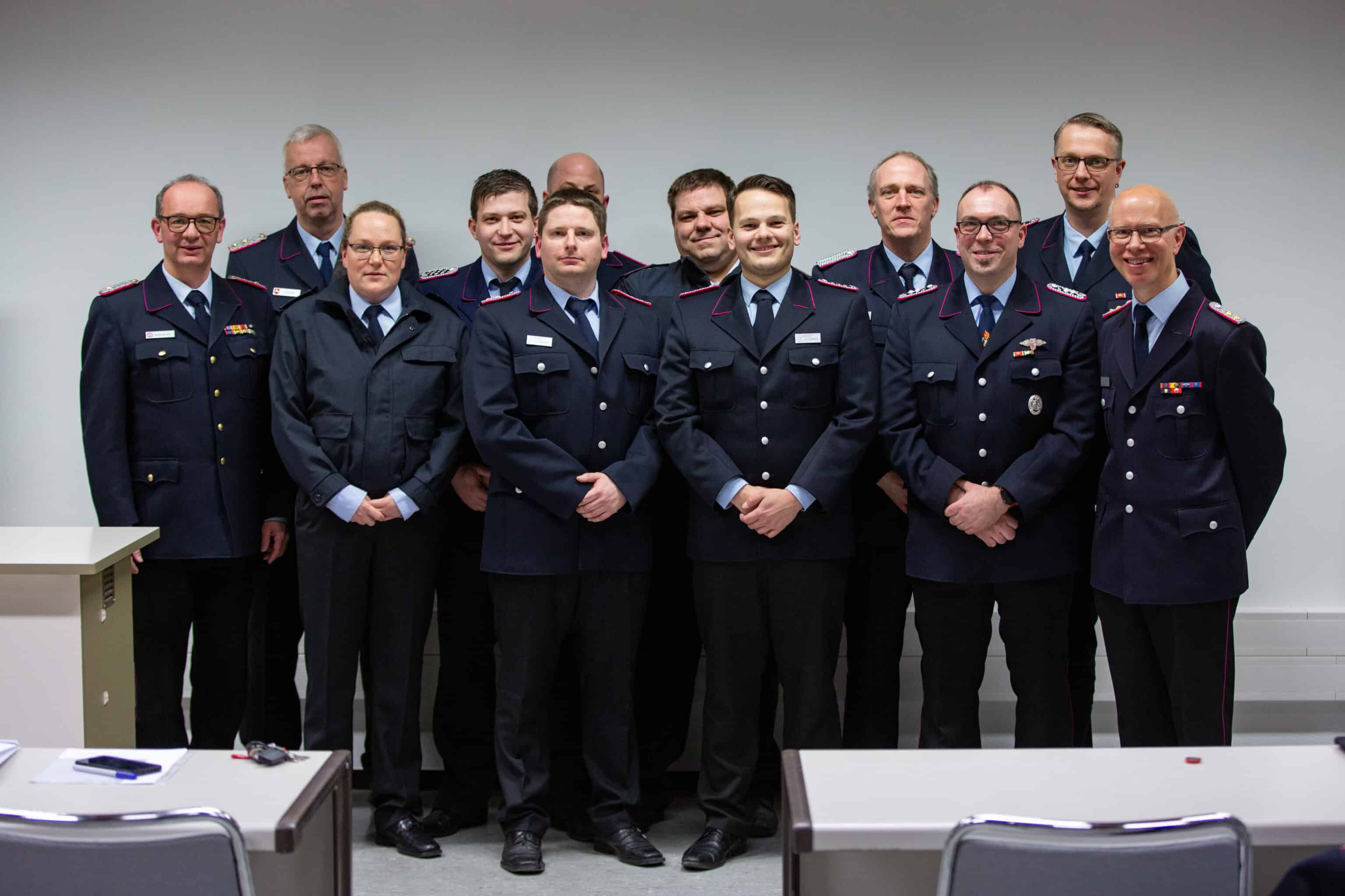 Befördert werden konnten Maik Zimmermann zum Hauptlöschmeister, Claus Carstens zum Oberlöschmeister, Daniel Stahlmann zum Löschmeister, Daniel Hübchen zum Löschmeister, Christian Seydler zum Löschmeister, Renè Hansmann zum Brandmeister, Mike Halves zum Oberbrandmeister und Martin Döscher zum Ersten Hauptbrandmeister.
