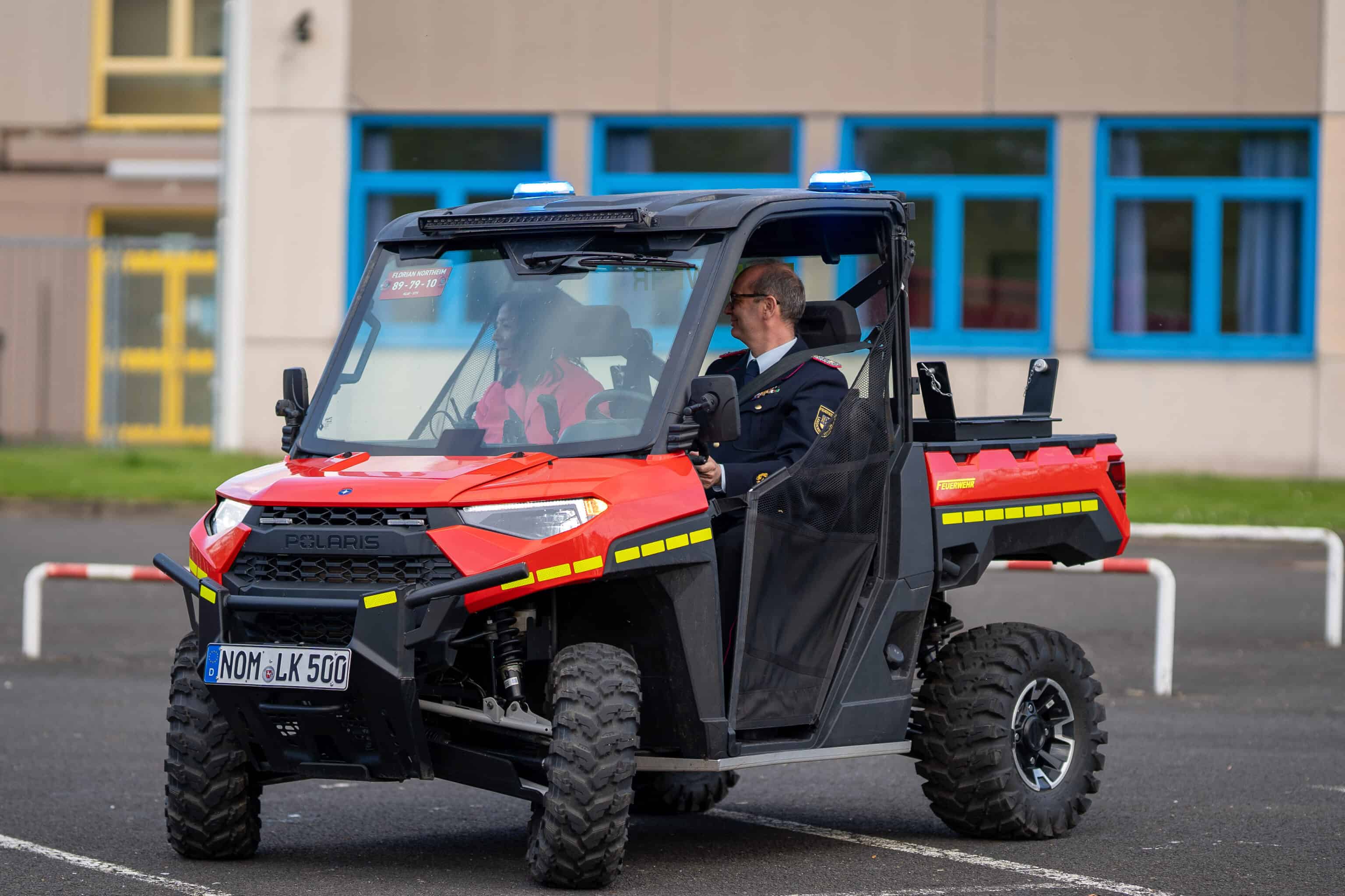 Ein neues Fahrzeug, das diese gestiegenen Anforderungen verdeutlicht, ist das Utility-All-Terrain-Vehicle (UTV). Mit diesem kann die Kreisfeuerwehr nicht nur Einsatzkräfte und Material auf engen Waldwegen zu Brandherden transportieren, sondern auch leichter unwegsames Gelände erkunden. Selbst verunglückte Wanderer in dem teils anspruchsvollen Gelände des Harzvorlandes und Sollings kann das UTV erreichen und zum Rettungswagen transportieren.